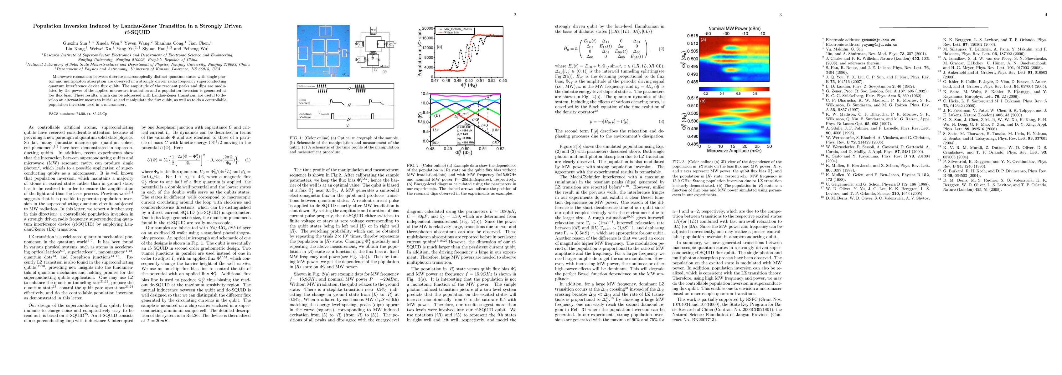 This paper reports microwave resonance observations in a strongly driven rf-SQUID, showing population inversion via Landau-Zener transition. The results provide a novel method for initializing and manipulating the flux qubit and enable controllable population inversion for micromaser applications.