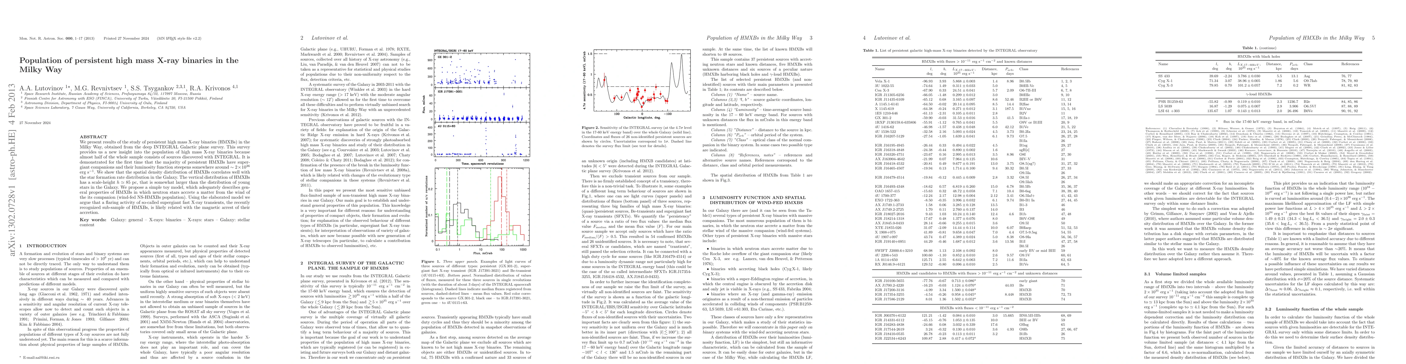 This study reveals new insights into persistent high mass X-ray binaries (HMXBs) in the Milky Way, showing that most HMXBs have supergiant companions and their luminosity function steepens around 2x10^36 erg/s. The spatial density of HMXBs correlates with the galaxy's star formation rate, and their vertical distribution has a scale-height of ~85 pc.