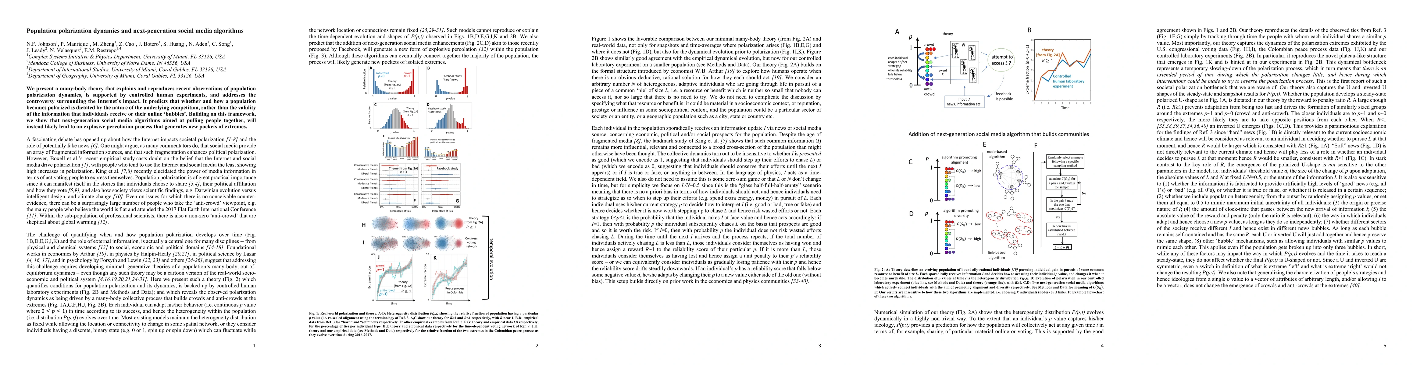 We present a many-body theory that explains and reproduces recent observations of population polarization dynamics, is supported by controlled human experiments, and addresses the controversy surrounding the Internet's impact. It predicts that whether and how a population becomes polarized is dictated by the nature of the underlying competition, rather than the validity of the information that individuals receive or their online bubbles. Building on this framework, we show that next-generation social media algorithms aimed at pulling people together, will instead likely lead to an explosive percolation process that generates new pockets of extremes.