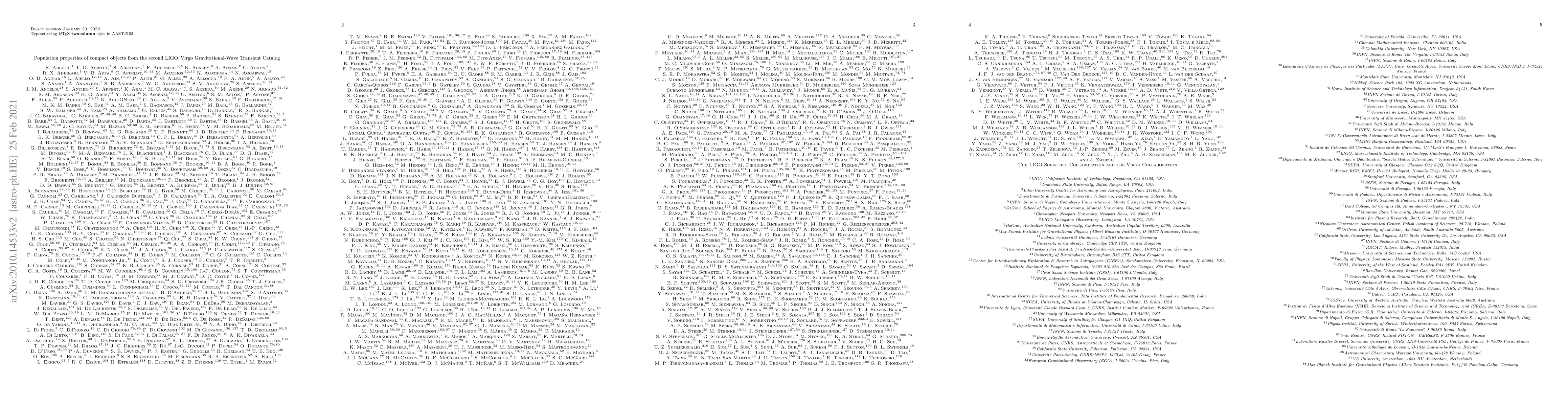 We report on the population of the 47 compact binary mergers detected with a false-alarm rate 1/yr in the second LIGO--Virgo Gravitational-Wave Transient Catalog, GWTC-2. We observe several characteristics of the merging binary black hole (BBH) population not discernible until now. First, we find that the primary mass spectrum contains structure beyond a power-law with a sharp high-mass cut-off; it is more consistent with a broken power law with a break at $39.7^{+20.3}_{-9.1}\,M_\odot$, or a power law with a Gaussian feature peaking at $33.1^{+4.0}_{-5.6}\,M_\odot$ (90\% credible interval). While the primary mass distribution must extend to $\sim65\,M_\odot$ or beyond, only $2.9^{+3.5}_{1.7}\%$ of systems have primary masses greater than $45\,M_\odot$. Second, we find that a fraction of BBH systems have component spins misaligned with the orbital angular momentum, giving rise to precession of the orbital plane. Moreover, 12% to 44% of BBH systems have spins tilted by more than $90^\circ$, giving rise to a negative effective inspiral spin parameter $\chi_\mathrm{eff}$. Under the assumption that such systems can only be formed by dynamical interactions, we infer that between 25% and 93% of BBH with non-vanishing $|\chi_\mathrm{eff}| > 0.01$ are dynamically assembled. Third, we estimate merger rates, finding $\mathcal{R}_\text{BBH} = 23.9^{+14.3}_{8.6}$ Gpc$^{-3}$ yr$^{-1}$ for BBH and $\mathcal{R}_\text{BNS}= 320^{+490}_{-240}$ Gpc$^{-3}$ yr$^{-1}$ for binary neutron stars. We find that the BBH rate likely increases with redshift ($85\%$ credibility), but not faster than the star-formation rate ($86\%$ credibility). Additionally, we examine recent exceptional events in the context of our population models, finding that the asymmetric masses of GW190412 and the high component masses of GW190521 are consistent with our models, but the low secondary mass of GW190814 makes it an outlier.