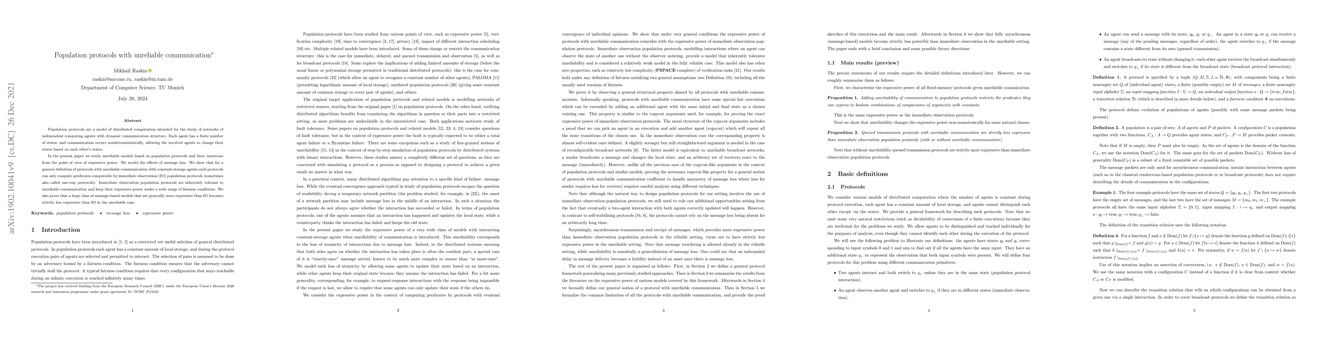This paper investigates unreliable population protocols, focusing on their expressive power when communication is unreliable. It demonstrates that unreliable protocols with constant-storage agents can only compute predicates computable by immediate observation protocols, which maintain their expressive power despite unreliable communication.