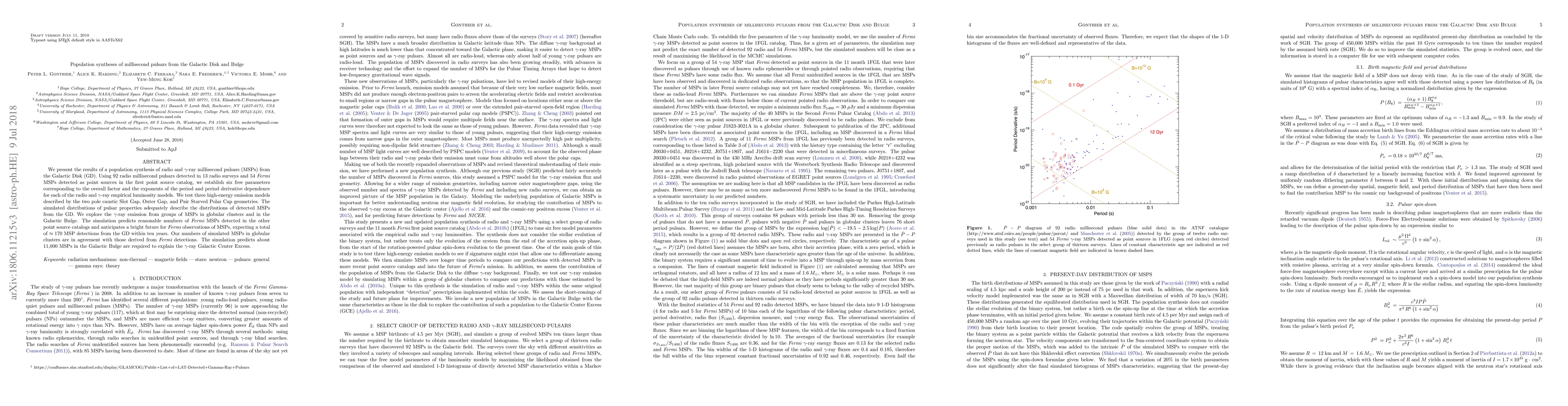This research synthesizes a population of radio and gamma-ray millisecond pulsars (MSPs) from the Galactic Disk and Bulge, establishing empirical luminosity models and predicting future detections. The simulation aligns well with current observations and anticipates ~170 MSP detections in the next decade, along with ~11,000 MSPs in the Galactic Bulge to explain the gamma-ray Galactic Center Excess.