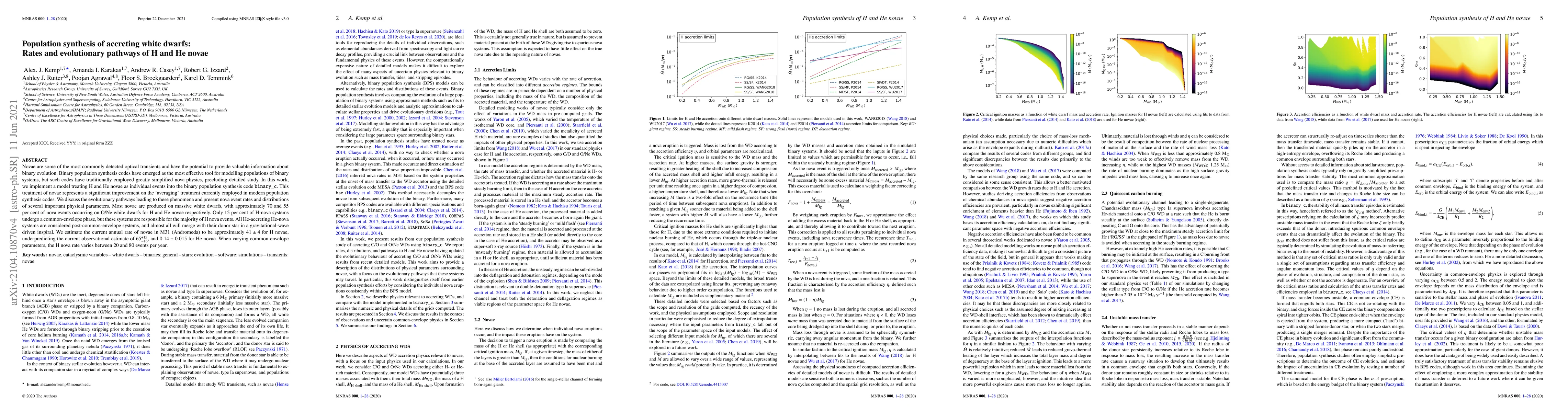 This paper presents an improved model of H and He novae within binary population synthesis, detailing their evolutionary pathways and nova event rates. It finds that most novae occur on massive white dwarfs, with significant differences in common-envelope phases between H-nova and He-nova systems, and estimates the annual nova rates for M31.