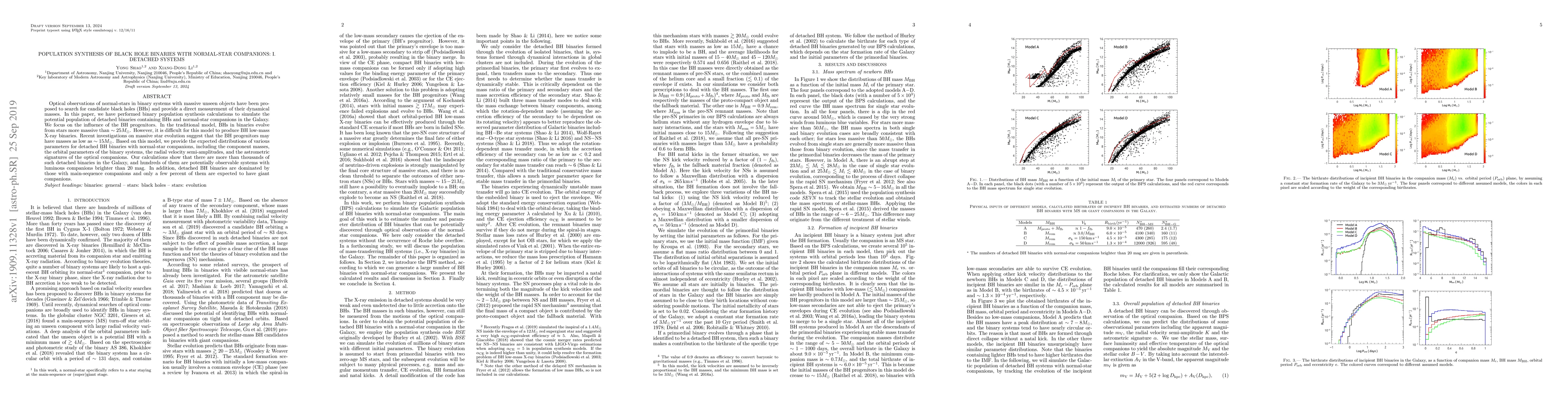 This paper presents binary population synthesis calculations for detached black hole (BH) binaries with normal-star companions, exploring the influence of BH progenitors. It suggests that BHs may originate from stars as low as $ \sim15M_{\odot}$, leading to the prediction of thousands of observable detached BH binaries in the Galaxy, predominantly with main-sequence companions.