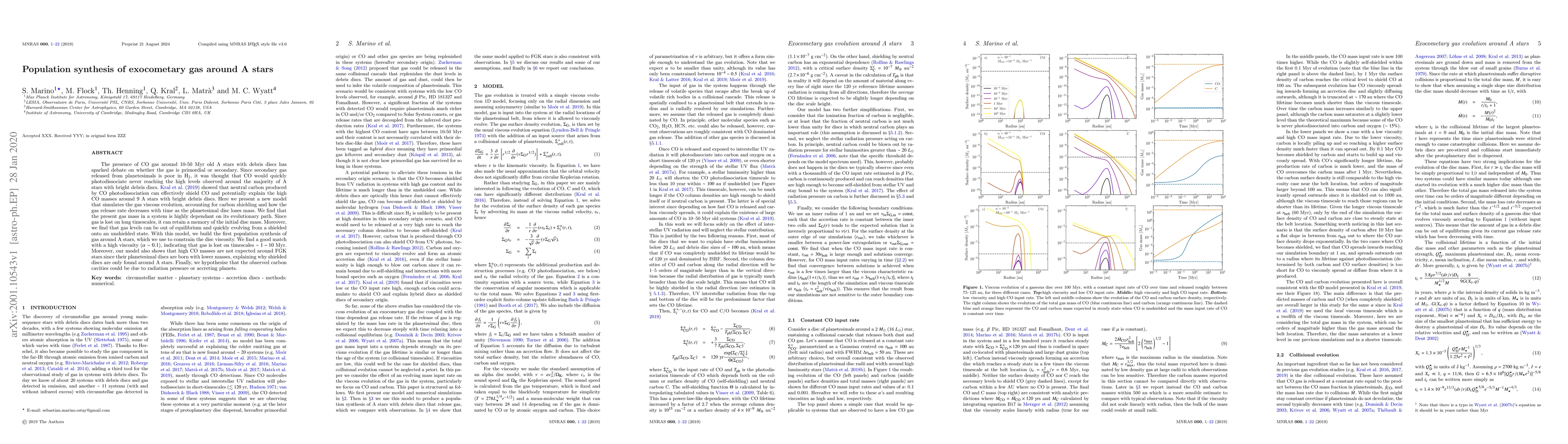 This paper presents a population synthesis model for CO gas around young A stars with debris discs, showing that carbon shielding from CO photodissociation can explain high CO gas levels. The study finds that gas retention depends on the initial disc mass and evolutionary path, with high viscosity indicating gas loss timescales of 1-10 Myr.