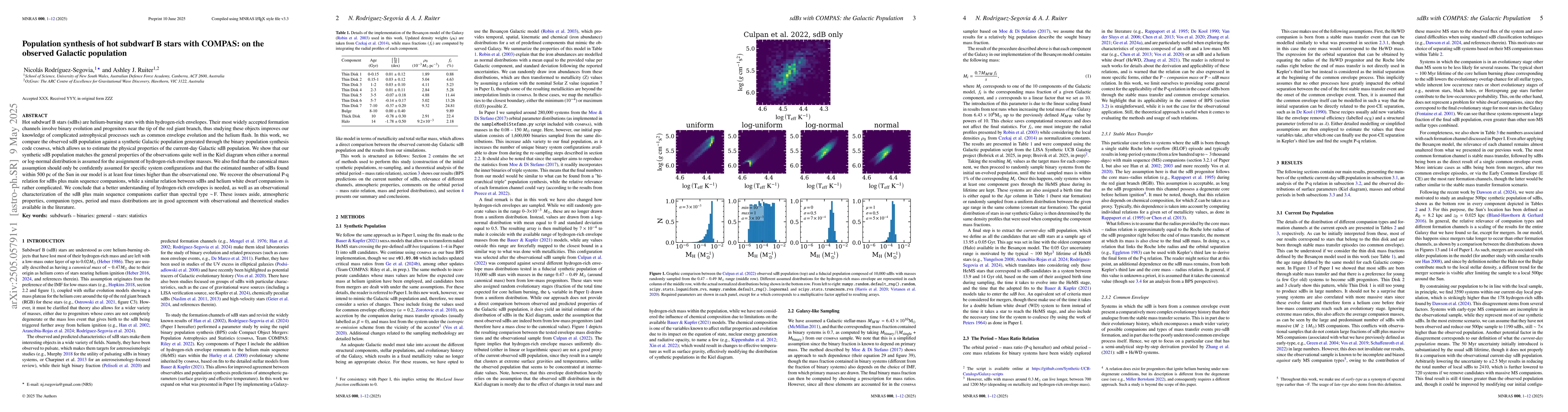 The study uses the binary population synthesis code COMPAS to generate a synthetic Galactic population of hot subdwarf B stars (sdBs), comparing it with the observed sdB population.