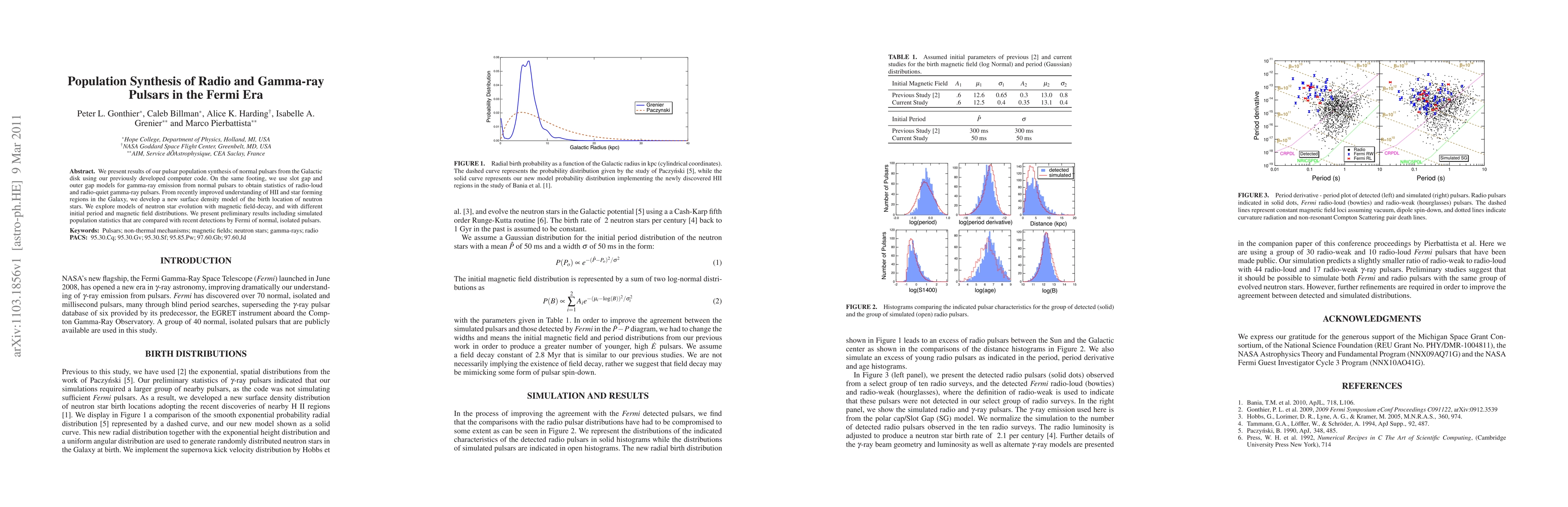 This paper synthesizes a population of radio and gamma-ray pulsars using advanced computational models and compares the results with recent Fermi observations. The study incorporates new insights into neutron star birth locations and explores various evolutionary models, providing preliminary statistics on radio-loud and radio-quiet gamma-ray pulsars.