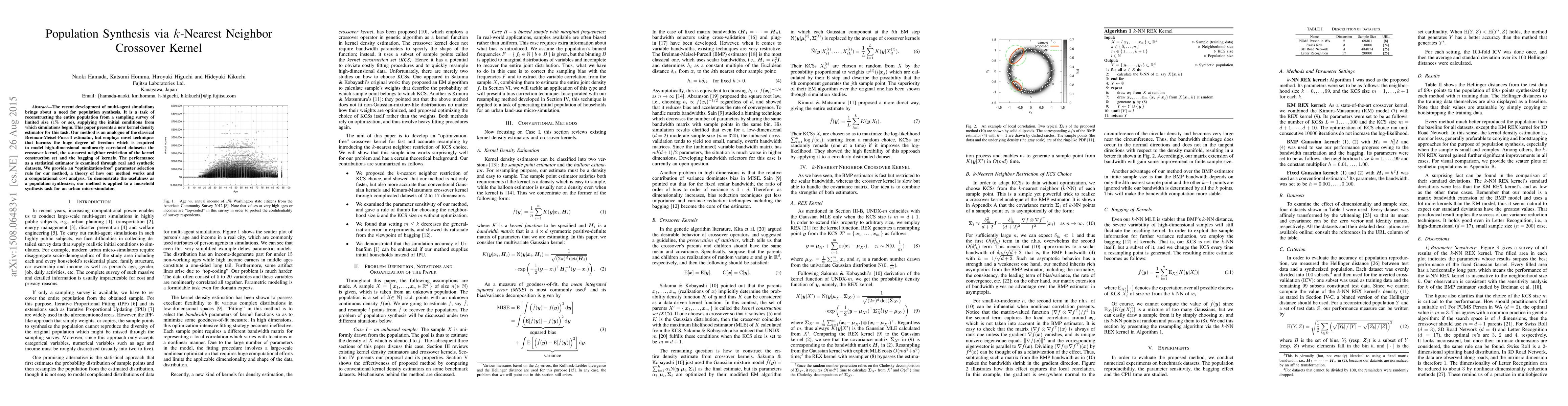 The recent development of multi-agent simulations brings about a need for population synthesis. It is a task of reconstructing the entire population from a sampling survey of limited size (1% or so), supplying the initial conditions from which simulations begin. This paper presents a new kernel density estimator for this task. Our method is an analogue of the classical Breiman-Meisel-Purcell estimator, but employs novel techniques that harness the huge degree of freedom which is required to model high-dimensional nonlinearly correlated datasets: the crossover kernel, the k-nearest neighbor restriction of the kernel construction set and the bagging of kernels. The performance as a statistical estimator is examined through real and synthetic datasets. We provide an "optimization-free" parameter selection rule for our method, a theory of how our method works and a computational cost analysis. To demonstrate the usefulness as a population synthesizer, our method is applied to a household synthesis task for an urban micro-simulator.