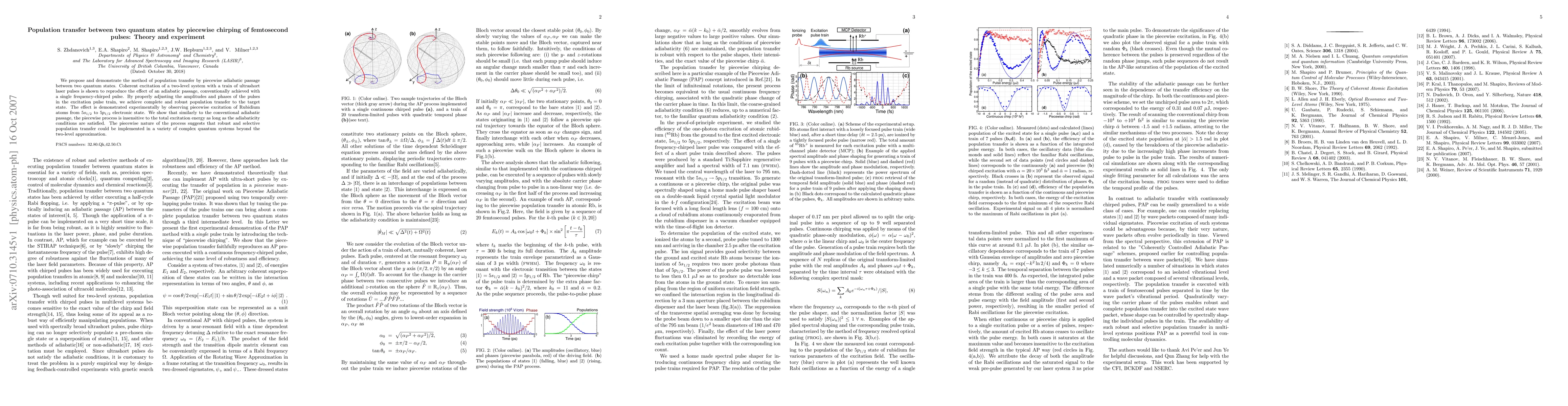 This paper proposes and experimentally demonstrates a method for population transfer between quantum states using a train of piecewise chirped femtosecond pulses, achieving complete and robust transfer akin to conventional adiabatic passage. The technique is shown to be robust and applicable beyond simple two-level systems.