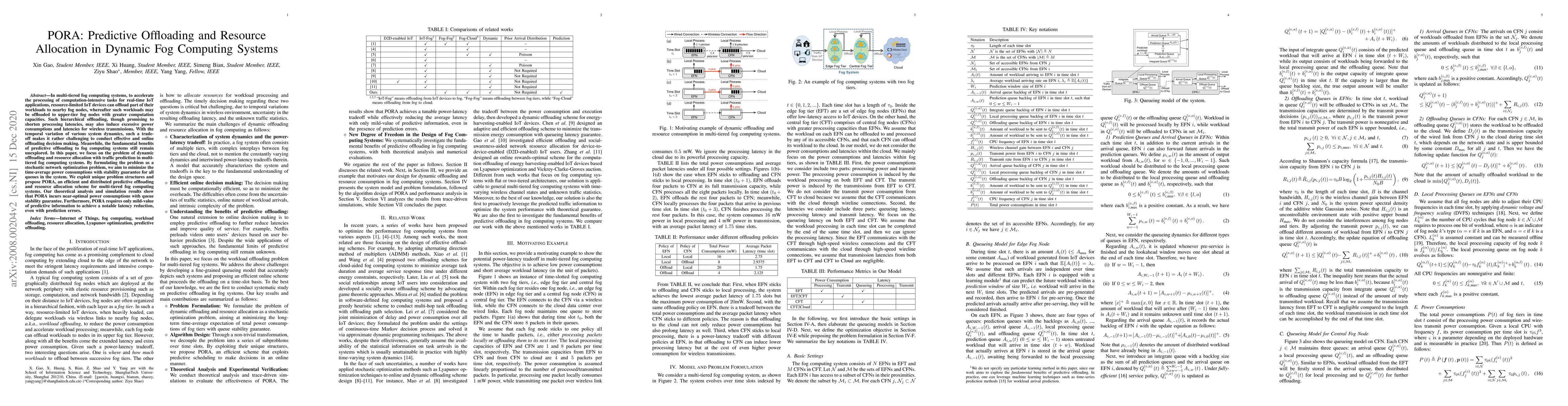 This paper proposes PORA, a predictive offloading and resource allocation scheme for multi-tiered fog computing systems, aiming to minimize power consumption while ensuring stability. The approach leverages traffic prediction to optimize dynamic offloading decisions, achieving near-optimal power efficiency and latency reduction despite prediction errors.