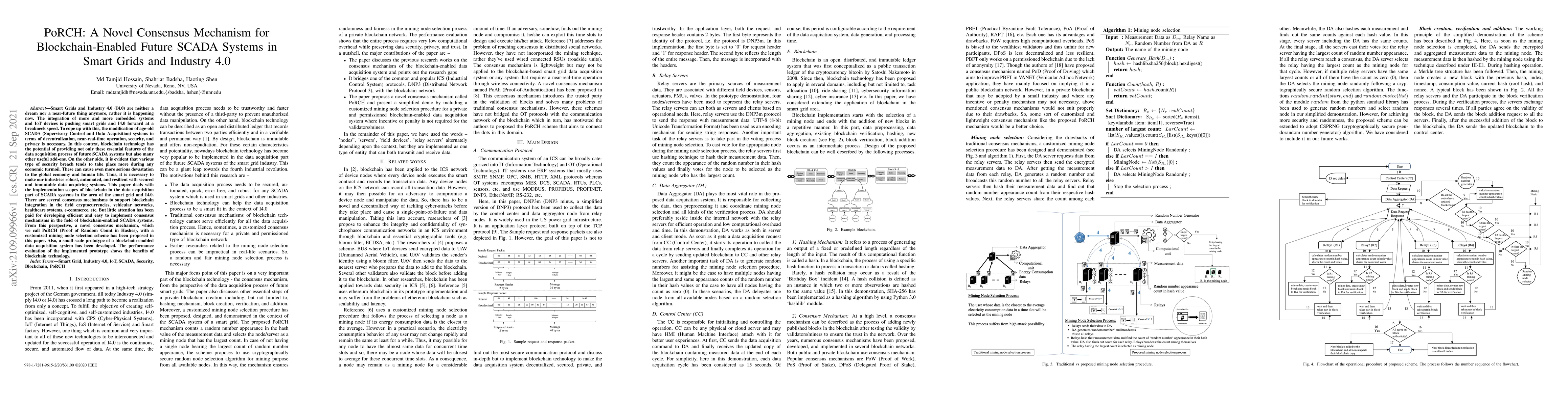 This paper proposes PoRCH, a novel consensus mechanism for blockchain integration in future SCADA systems within smart grids and Industry 4.0, aiming to enhance decentralization, security, and data acquisition efficiency. The PoRCH mechanism includes a customized mining node selection scheme and a small-scale prototype demonstrates its effectiveness.