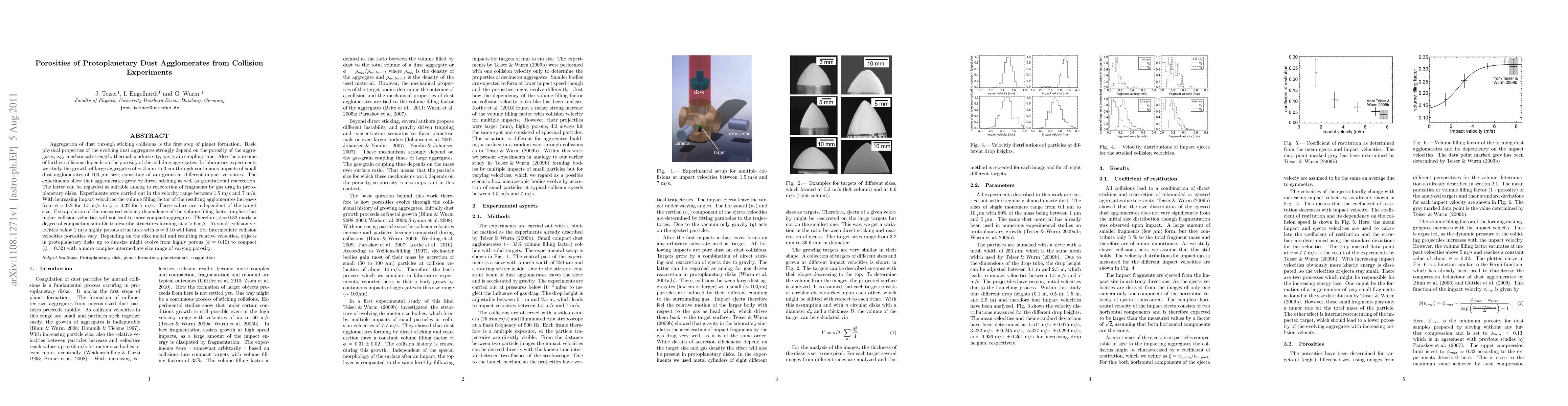 This study investigates the porosity of protoplanetary dust agglomerates formed through collision experiments at varying impact velocities. The results show that higher collision velocities lead to more compact aggregates, with a volume filling factor increasing from 0.2 to 0.32, while lower velocities produce highly porous structures.