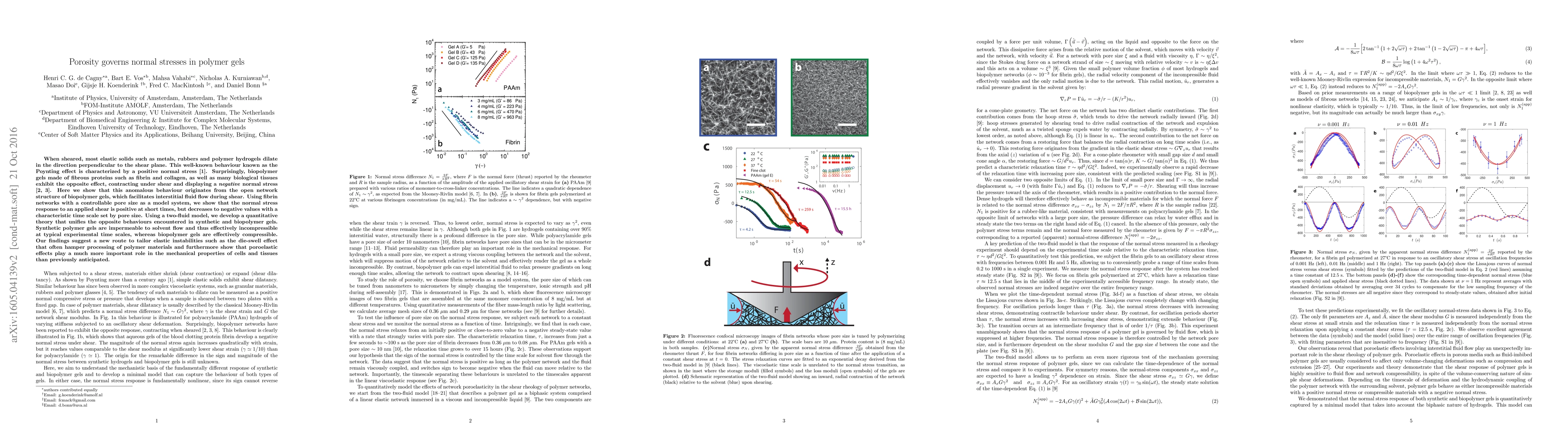 This study reveals that the porosity of biopolymer gels, such as fibrin and collagen, governs their normal stress response under shear, leading to contraction and negative normal stress, unlike synthetic polymer gels. The research develops a two-fluid model to explain this behavior, highlighting the significance of poroelastic effects in biological tissues.