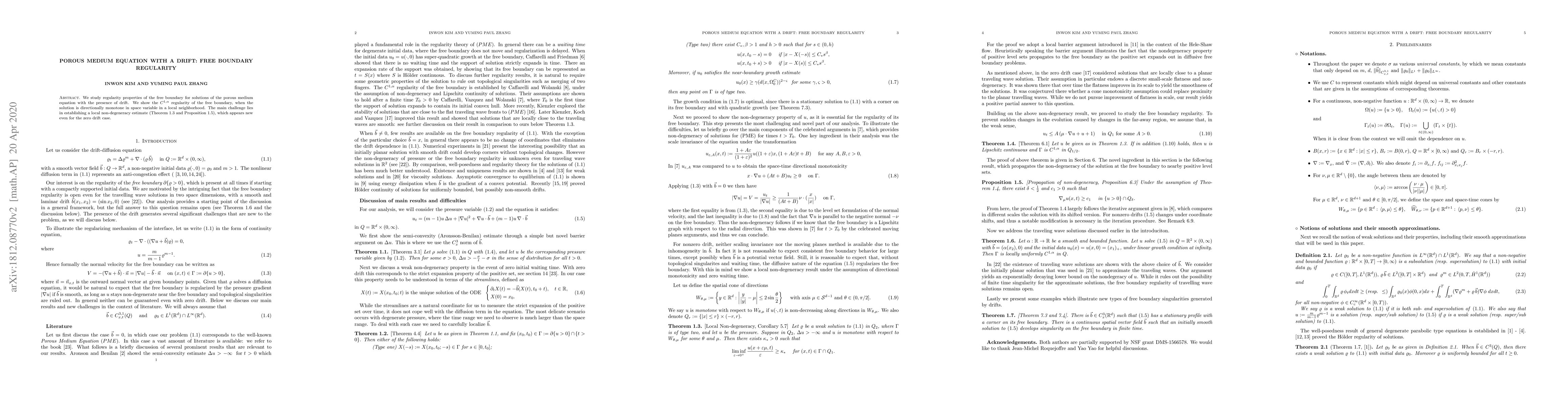 This paper investigates the regularity of the free boundary for solutions to the porous medium equation with drift, proving $C^{1,\alpha}$ regularity under directional monotone conditions. The key contribution is a novel local non-degeneracy estimate, crucial for establishing the results even in the zero drift scenario.