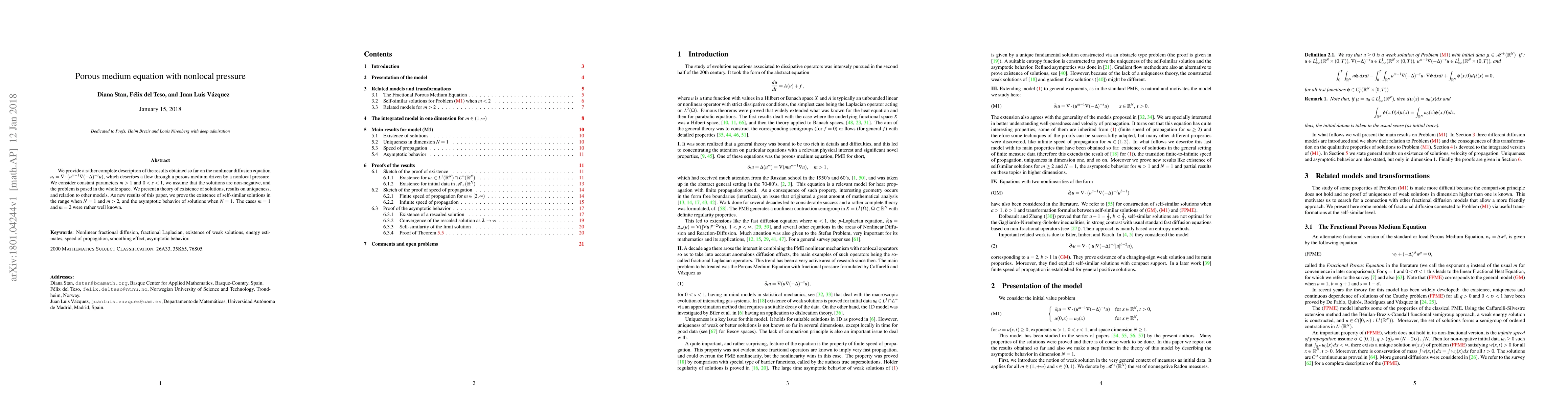 This paper studies a nonlinear diffusion equation modeling flow through porous media driven by nonlocal pressure, with new results on existence of solutions, uniqueness, and self-similar behavior when m > 2.