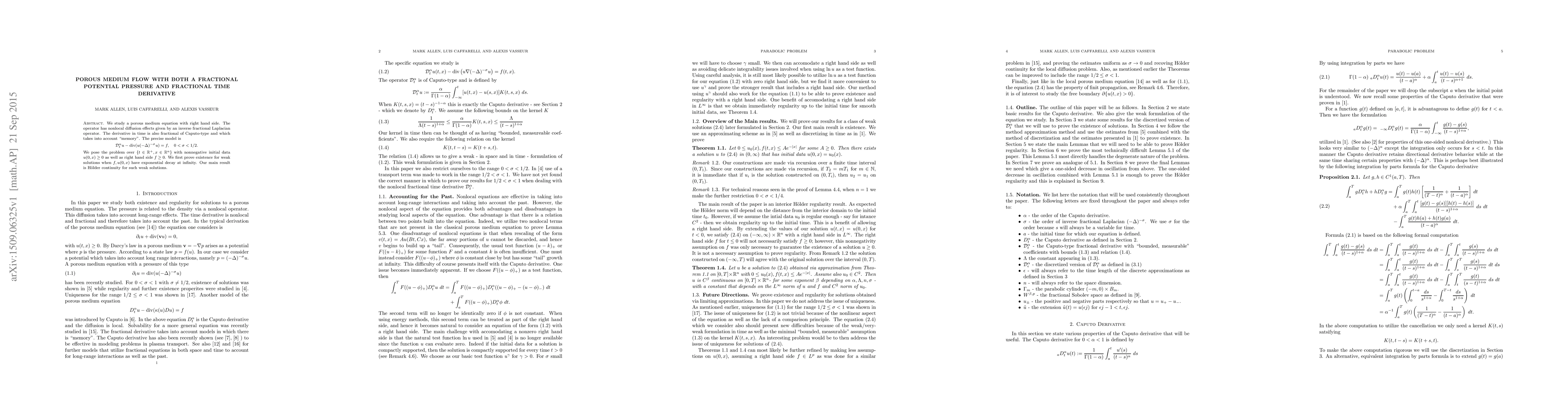This paper investigates a fractional porous medium flow equation with both nonlocal diffusion and fractional time derivative, proving existence and H\"older continuity for weak solutions under certain conditions. The model incorporates memory effects via a Caputo-type fractional derivative and nonlocal diffusion through an inverse fractional Laplacian operator.