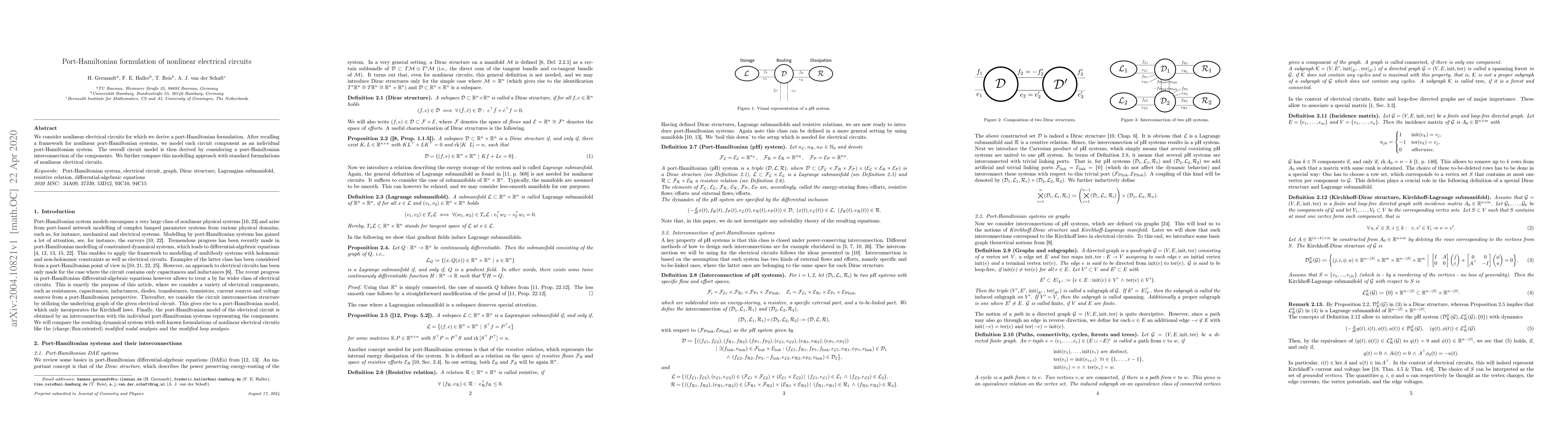 This paper derives a port-Hamiltonian formulation for nonlinear electrical circuits by modeling each component as an individual port-Hamiltonian system and interconnecting them. It compares this novel approach with traditional circuit modeling methods.