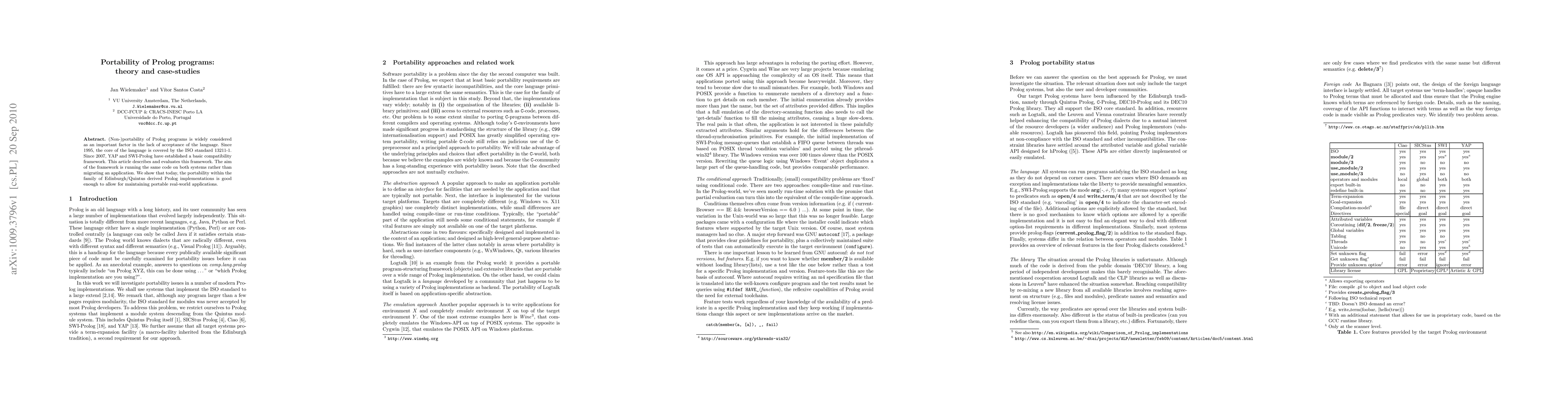 This paper evaluates the compatibility framework between YAP and SWI-Prolog for Prolog programs, demonstrating sufficient portability within Edinburgh/Quintus derived implementations to support real-world applications without requiring migration. The study highlights the progress made since the ISO standard was established in 1995.