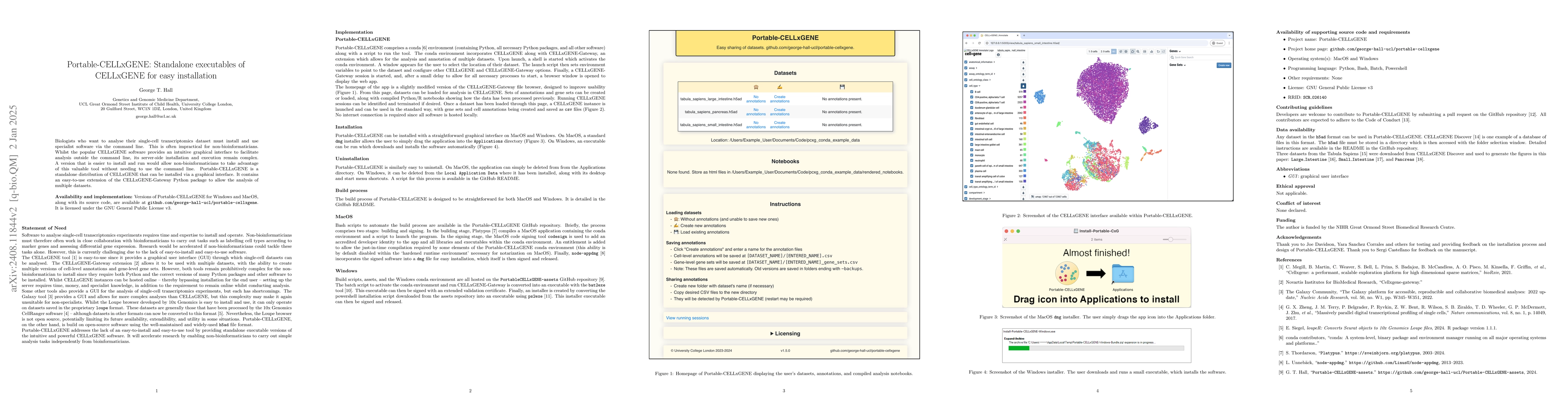 **Summary:** Portable-CELLxGENE simplifies the installation and use of CELLxGENE for non-bioinformaticians by providing standalone executables for Windows and MacOS, enabling easier analysis of single-cell transcriptomics datasets without command-line expertise. Source code is available under the GNU GPL v3.