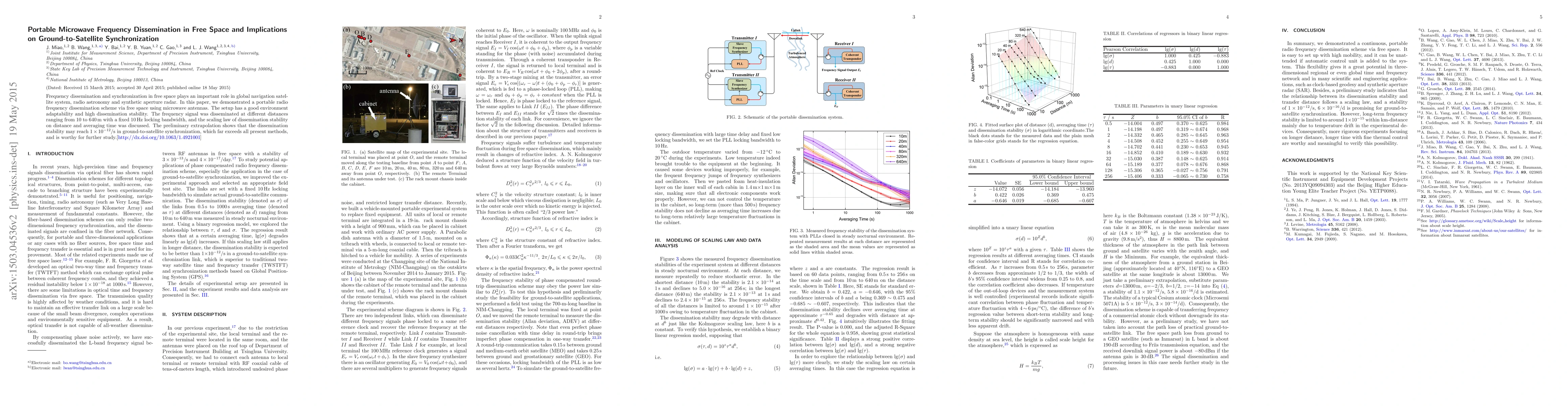 This paper presents a portable microwave frequency dissemination scheme using antennas, demonstrating high stability and adaptability over distances from 10 to 640 meters. The study suggests that this method could achieve unprecedented synchronization stability of $1\times10^{-12}/s$ for ground-to-satellite applications, surpassing current techniques.
