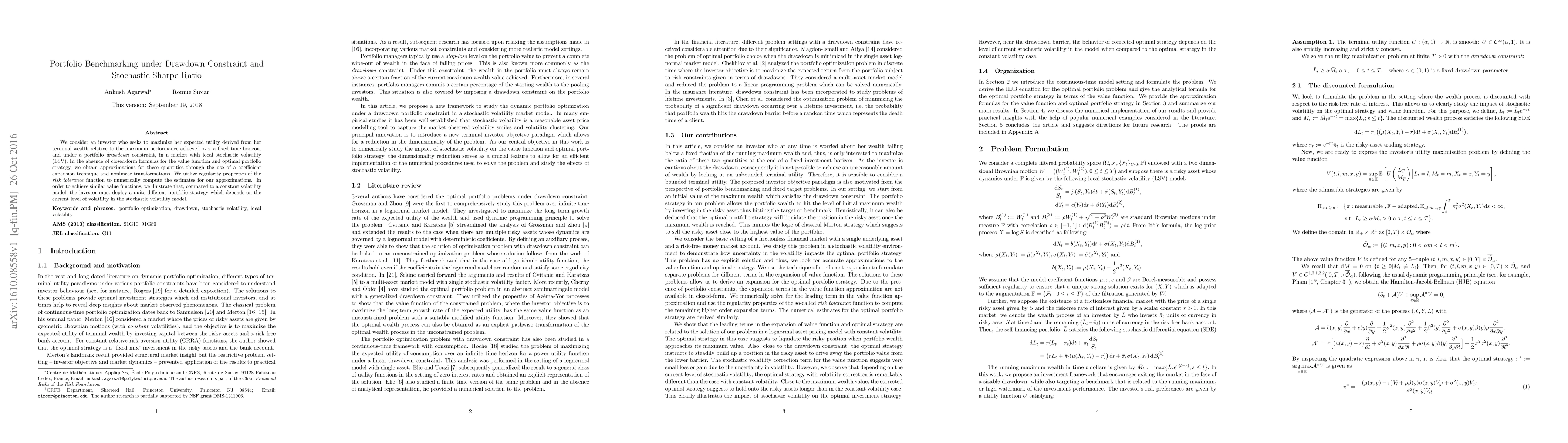 This paper explores portfolio optimization under a drawdown constraint and stochastic Sharpe ratio in a local stochastic volatility market. It employs a coefficient expansion technique to approximate the value function and optimal portfolio strategy, revealing that the investor's strategy must adapt to the current volatility level to achieve similar performance compared to a constant volatility model.
