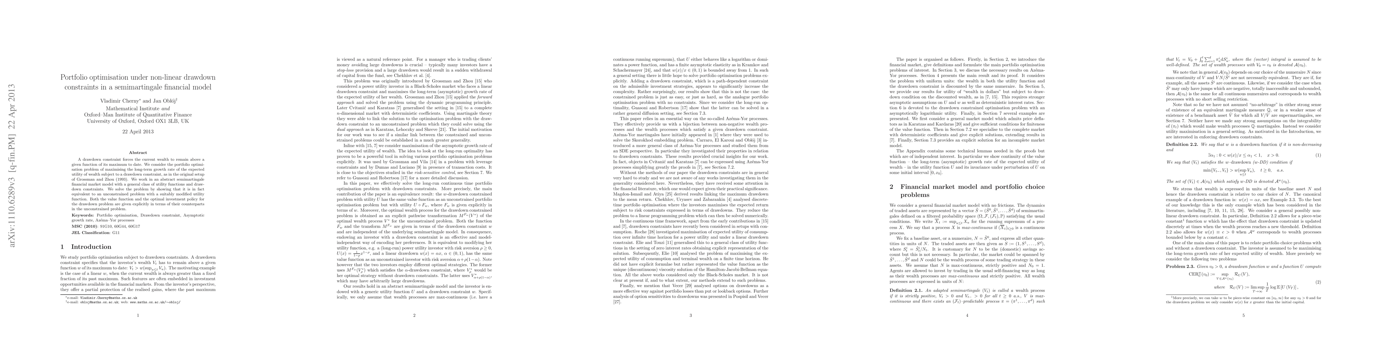 This paper studies portfolio optimisation under non-linear drawdown constraints within a semimartingale financial model. It demonstrates that the constrained optimisation problem is equivalent to an unconstrained problem with a modified utility function, providing explicit solutions for the value function and optimal investment policy.