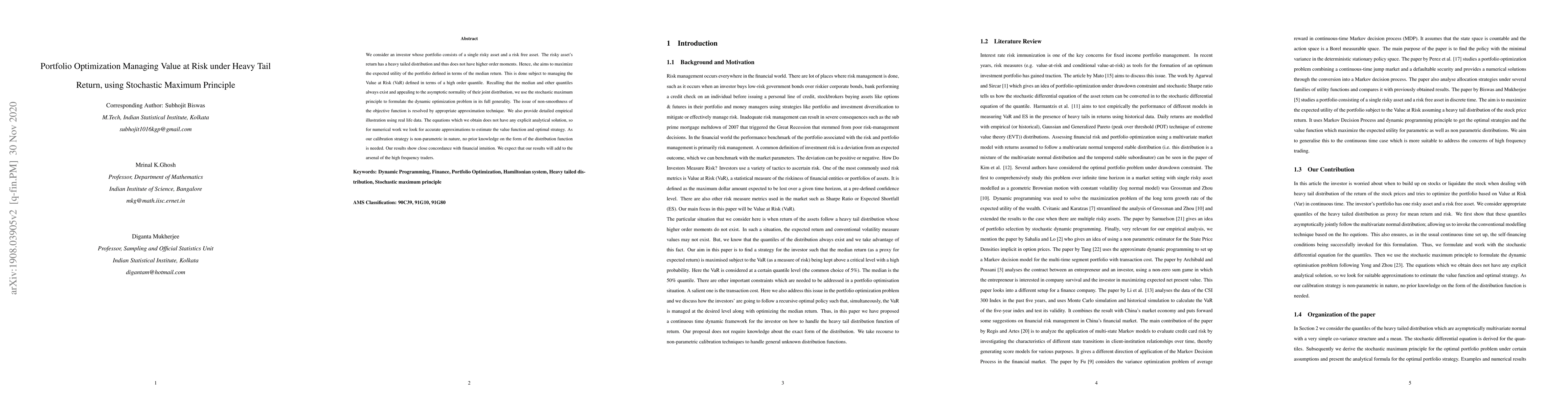 This paper explores portfolio optimization for an investor managing Value at Risk (VaR) under heavy-tailed return distributions using a stochastic maximum principle. It provides non-parametric calibration strategies and empirical illustrations with real data, yielding results that align with financial intuition and potentially benefit high-frequency traders.