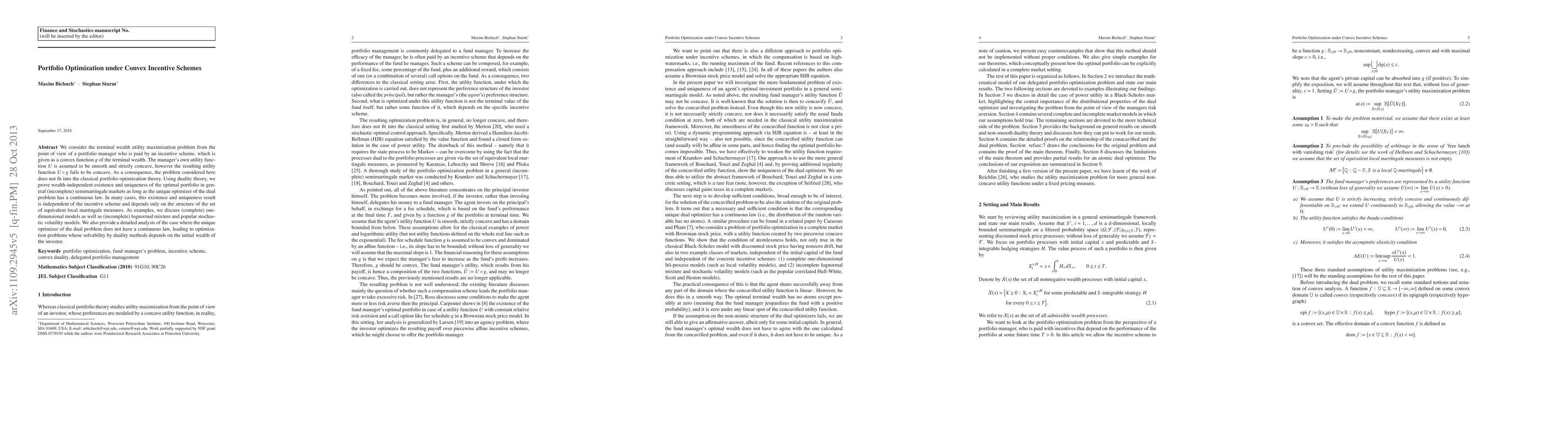 This paper explores portfolio optimization for a manager incentivized by a convex function of terminal wealth, leading to a non-standard utility function. It establishes the existence and uniqueness of optimal portfolios using duality theory, demonstrating that these results often depend on market structure rather than the specific incentive scheme.