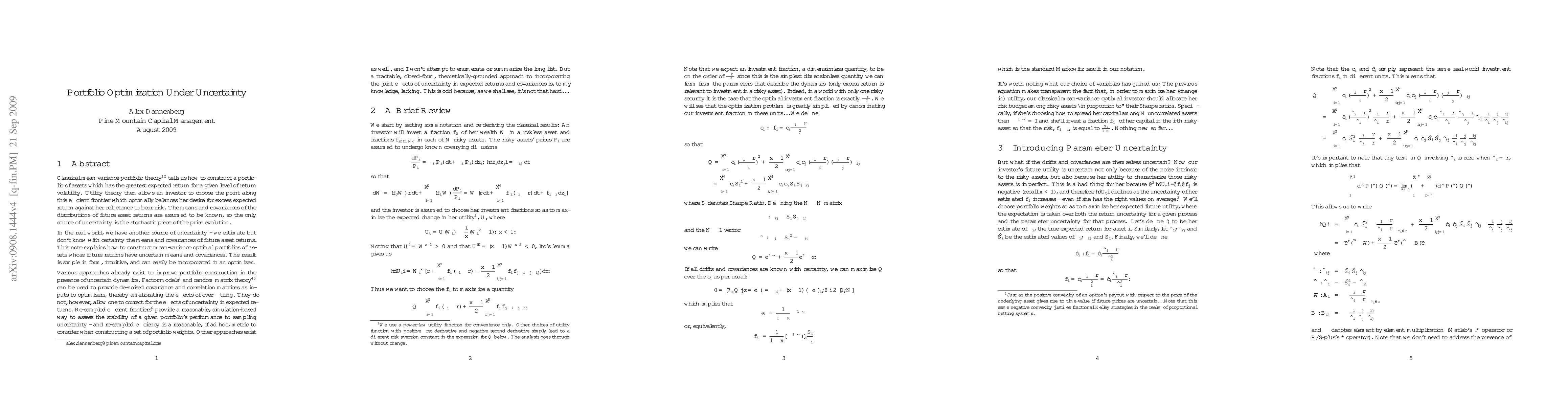 This research paper explains how to construct optimal portfolios under uncertainty when the means and covariances of asset returns are unknown, providing a simple solution that balances desired return and risk.