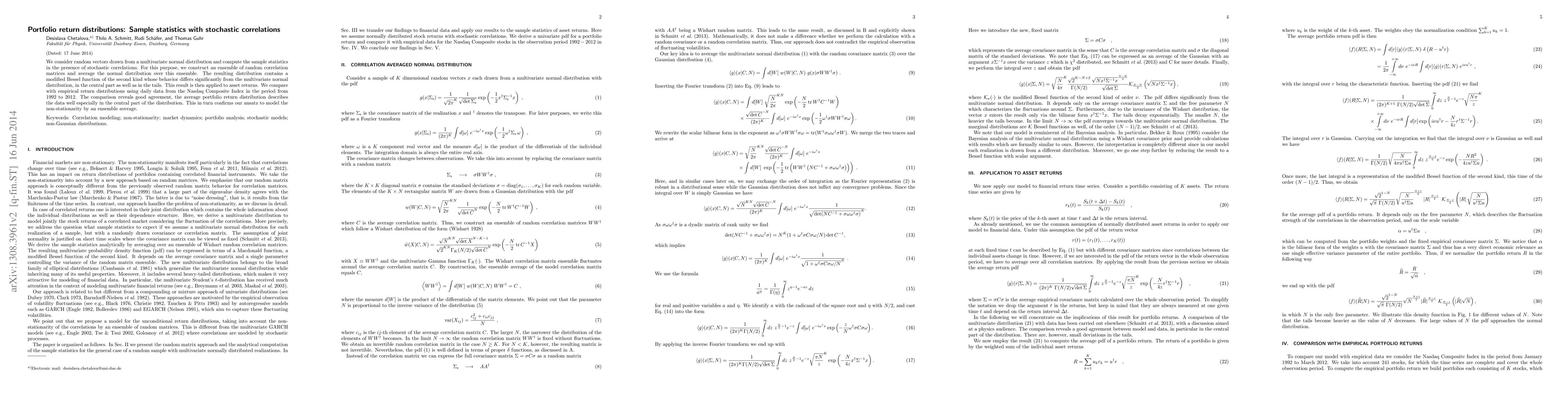 Researchers model portfolio return distributions with non-stationary correlations by averaging a normal distribution over an ensemble of correlation matrices, achieving good agreement with empirical data from the Nasdaq Composite Index.