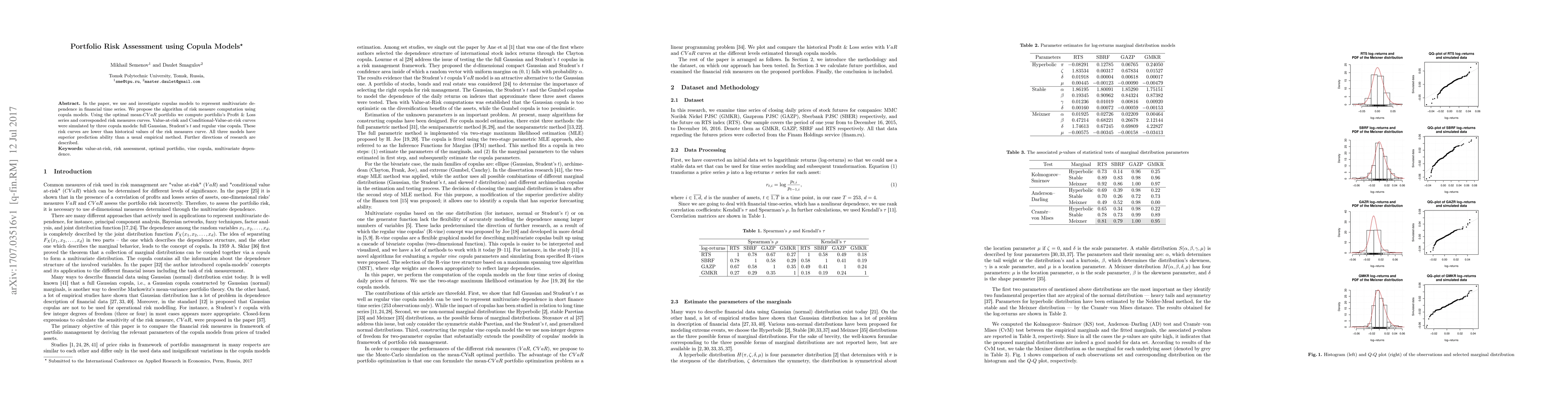This paper explores the use of copula models to assess portfolio risk by representing multivariate dependence in financial time series. It proposes an algorithm for risk measure computation and demonstrates superior prediction ability of copula models, specifically Gaussian, Student's $t$, and vine copulas, over traditional empirical methods.