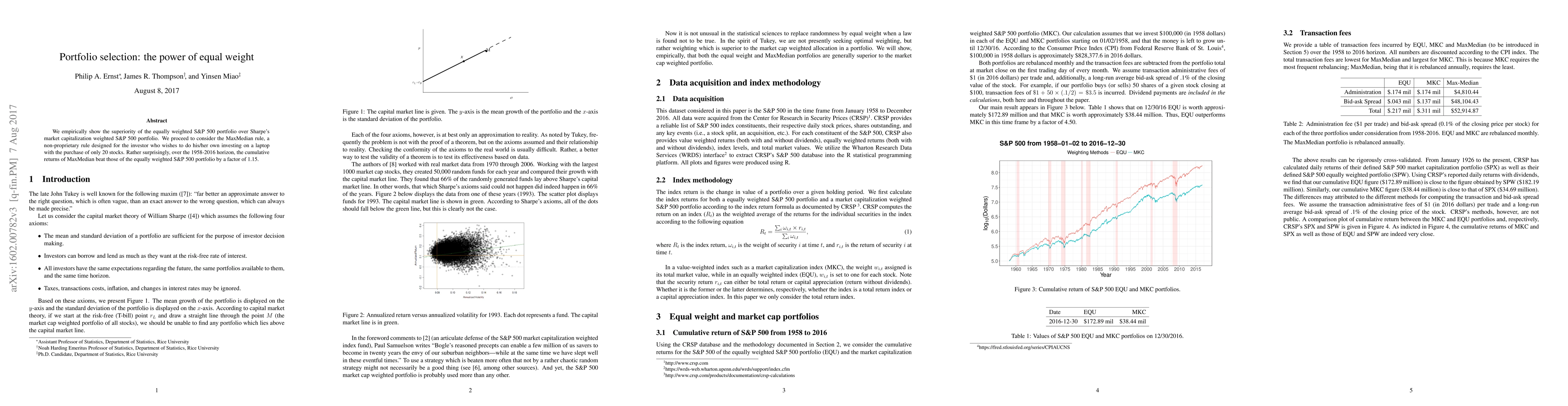 We empirically show the superiority of the equally weighted S\&P 500 portfolio over Sharpe's market capitalization weighted S\&P 500 portfolio. We proceed to consider the MaxMedian rule, a non-proprietary rule designed for the investor who wishes to do his/her own investing on a laptop with the purchase of only 20 stocks. Rather surprisingly, over the 1958-2016 horizon, the cumulative returns of MaxMedian beat those of the equally weighted S\&P 500 portfolio by a factor of 1.15.