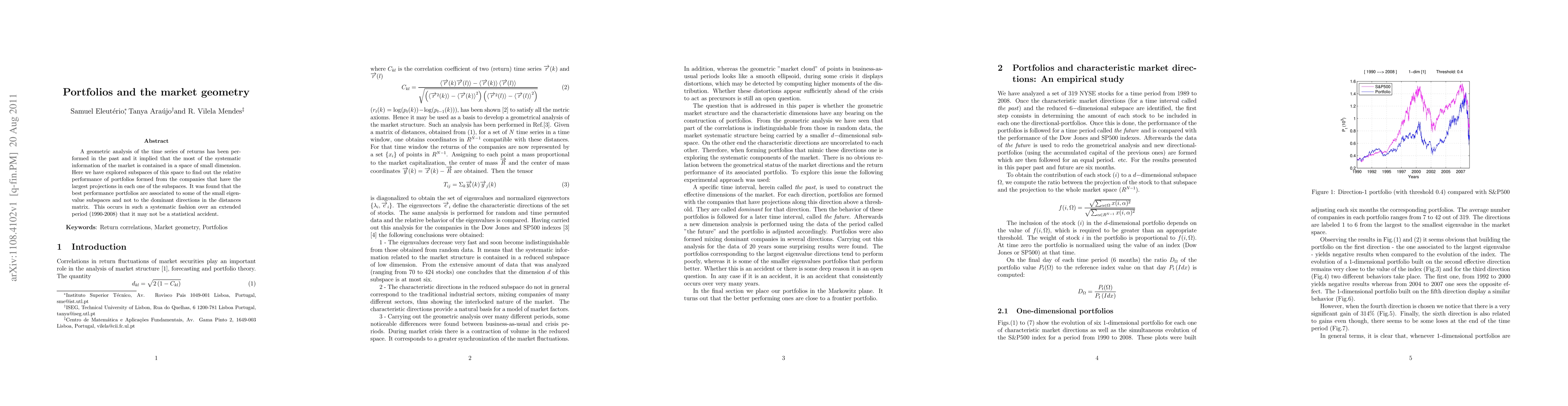 A geometric analysis of the time series of returns has been performed in the past and it implied that the most of the systematic information of the market is contained in a space of small dimension. Here we have explored subspaces of this space to find out the relative performance of portfolios formed from the companies that have the largest projections in each one of the subspaces. It was found that the best performance portfolios are associated to some of the small eigenvalue subspaces and not to the dominant directions in the distances matrix. This occurs in such a systematic fashion over an extended period (1990-2008) that it may not be a statistical accident.