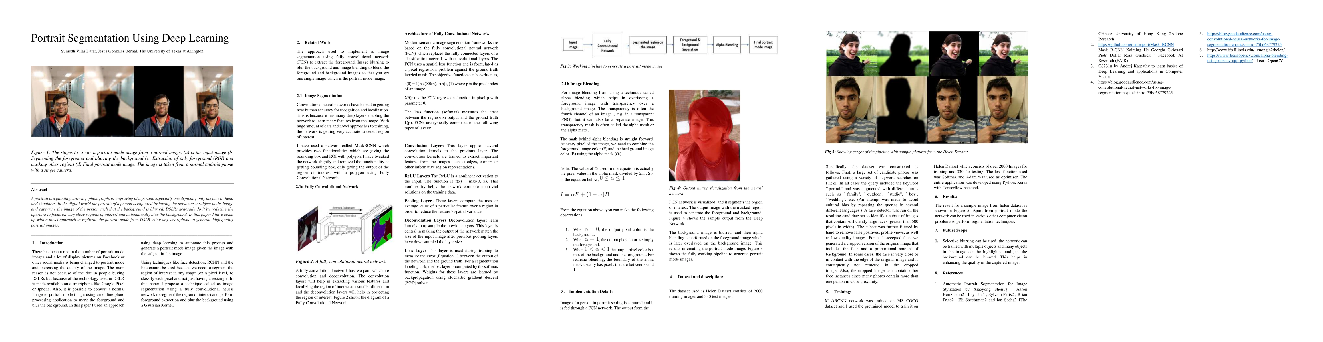 A portrait is a painting, drawing, photograph, or engraving of a person, especially one depicting only the face or head and shoulders. In the digital world the portrait of a person is captured by having the person as a subject in the image and capturing the image of the person such that the background is blurred. DSLRs generally do it by reducing the aperture to focus on very close regions of interest and automatically blur the background. In this paper I have come up with a novel approach to replicate the portrait mode from DSLR using any smartphone to generate high quality portrait images.