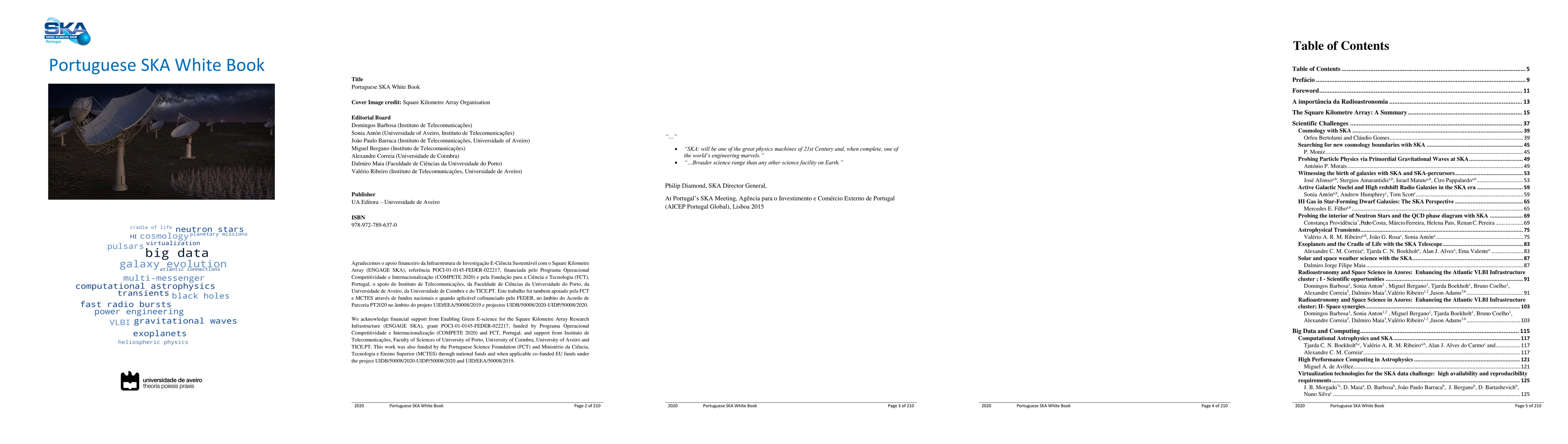 The Portuguese SKA White Book summarizes the contributions from the Portuguese SKA Days, highlighting the Square Kilometer Array's status, vision, and goals, and detailing Portuguese scientific and technological contributions and industry aspirations. The meeting, supported by the Portuguese Science and Technology Foundation, was successful in promoting the SKA project.