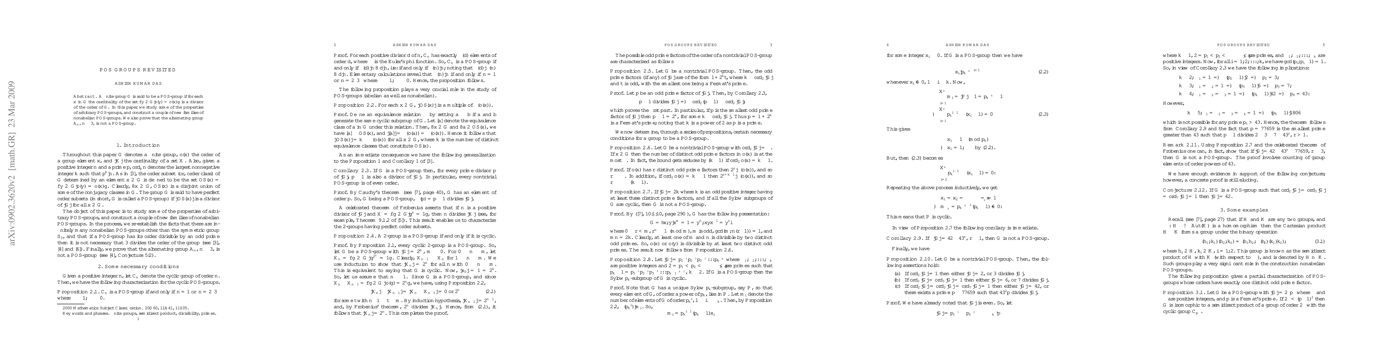 A finite group $G$ is said to be a POS-group if for each $ x $ in $G$ the cardinality of the set $\{y \in G | o(y) =o(x)\}$ is a divisor of the order of $G$. In this paper we study some of the properties of arbitrary POS-groups, and construct a couple of new families of nonabelian POS-groups. We also prove that the alternating group $A_n$, $n \ge 3$, is not a POS-group.