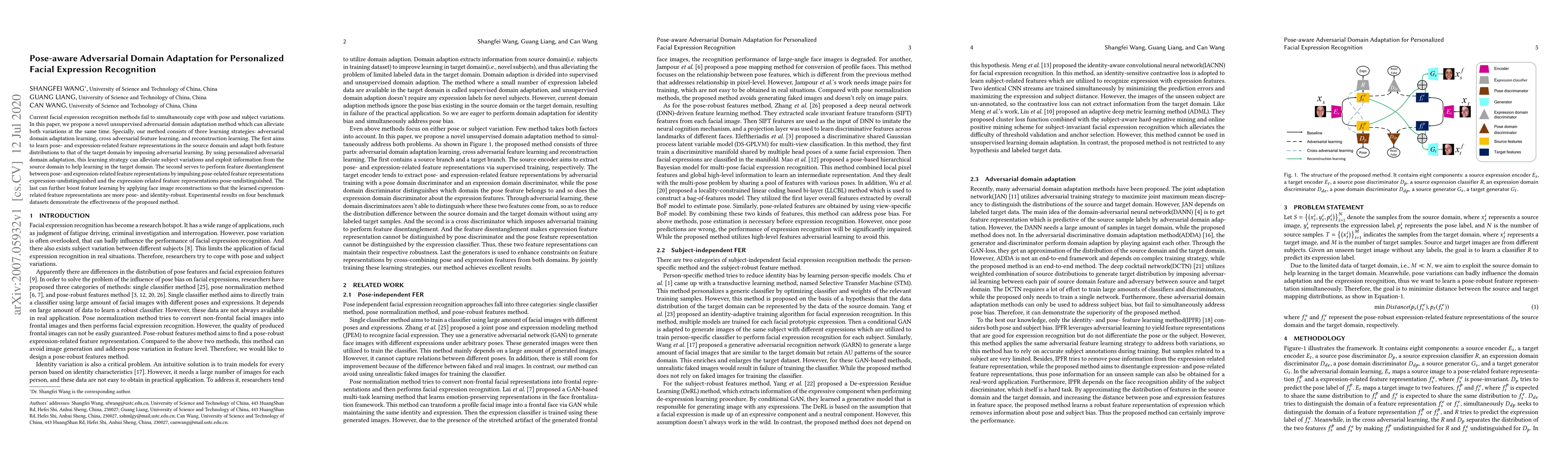 This paper introduces an unsupervised adversarial domain adaptation method to improve personalized facial expression recognition by simultaneously addressing pose and subject variations. The proposed method employs adversarial domain adaptation, cross adversarial feature learning, and reconstruction learning to disentangle and enhance feature representations, resulting in robust performance across different datasets.