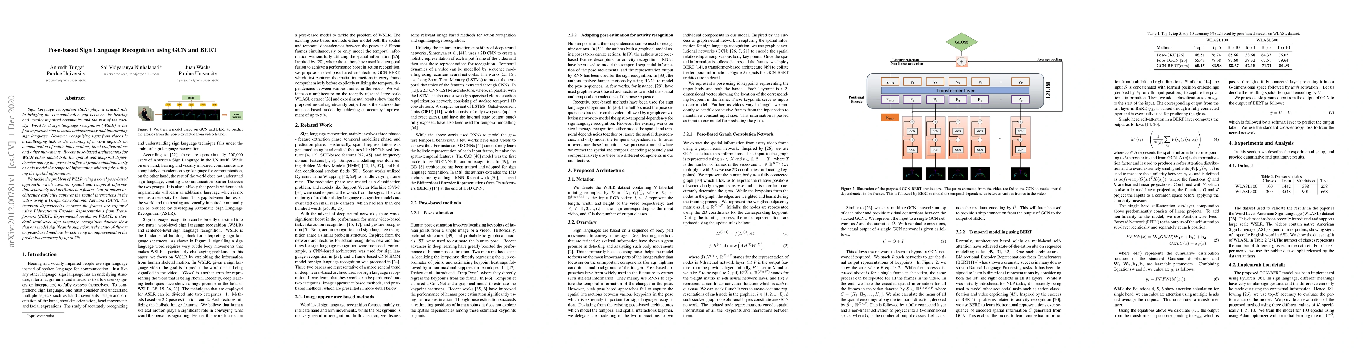 This paper proposes a novel pose-based approach for word-level sign language recognition (WSLR) using a Graph Convolutional Network (GCN) to capture spatial interactions and BERT to capture temporal dependencies, achieving up to 5% improvement over state-of-the-art methods on the WLASL dataset.