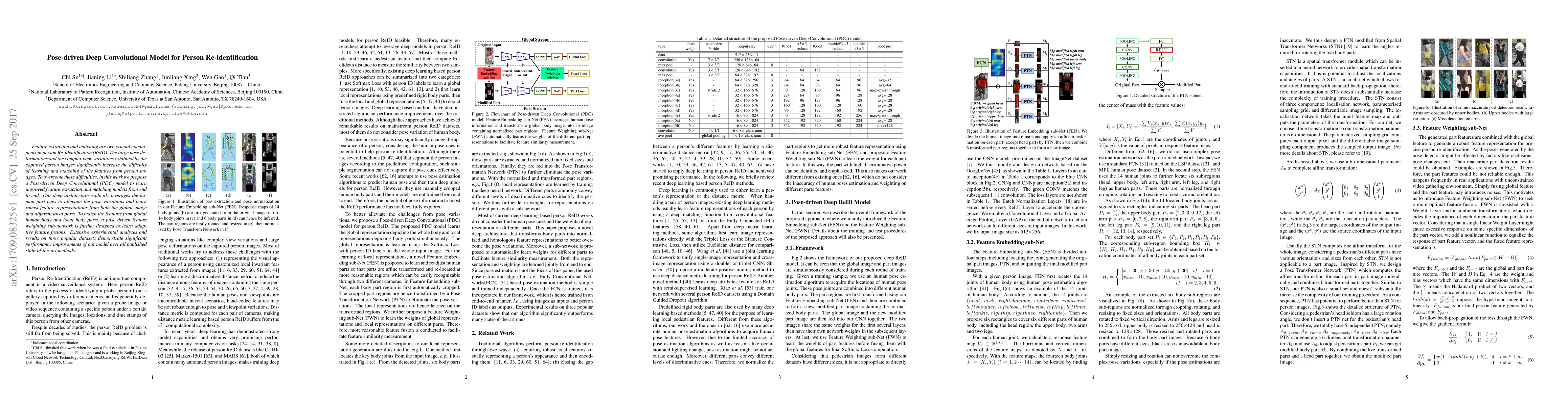 This paper proposes a Pose-driven Deep Convolutional (PDC) model to enhance person re-identification by leveraging human part cues to mitigate pose variations and improve feature extraction and matching. The model demonstrates significant performance improvements over existing methods on multiple datasets.