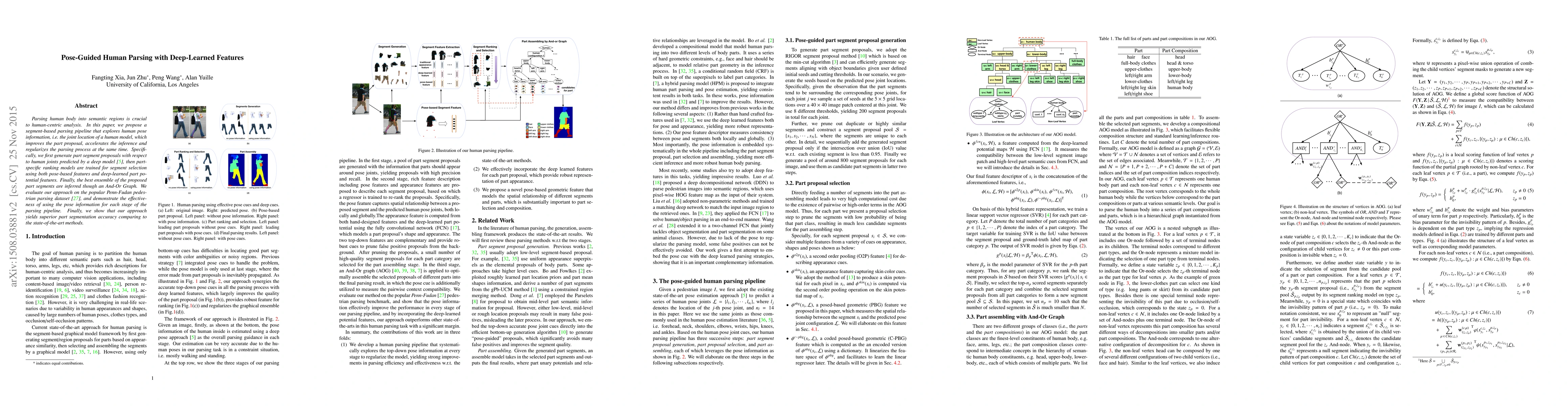 This paper proposes a segment-based parsing pipeline using human pose information to improve the accuracy of human body semantic region segmentation. The method integrates pose-based features with deep-learned part potential features to enhance part proposal, selection, and inference, achieving superior performance compared to state-of-the-art methods.