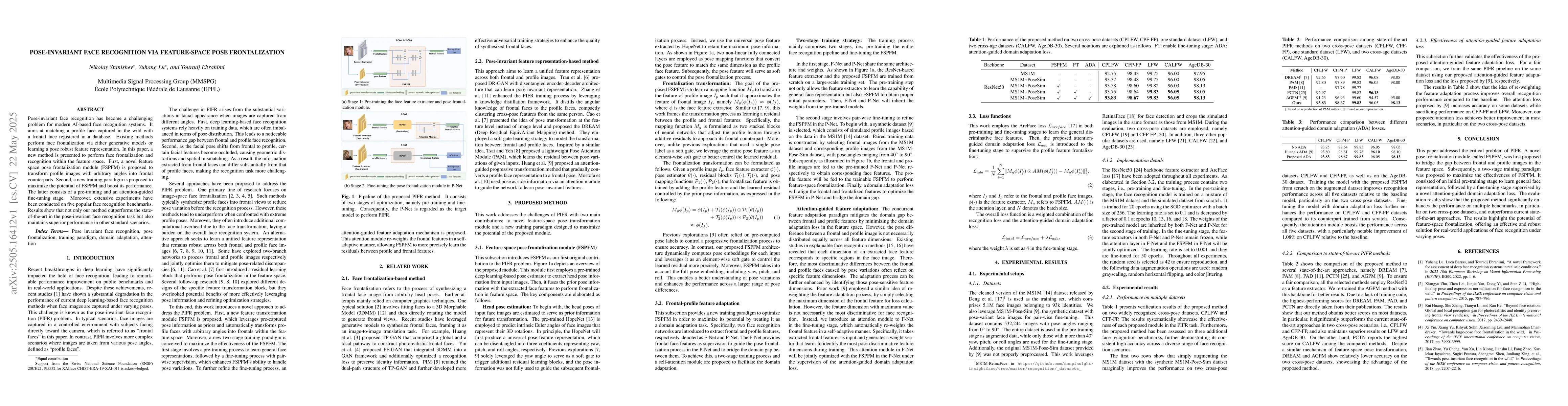 The paper presents a novel feature space pose frontalization module (FSPFM) for transforming profile images into frontal counterparts and introduces a new training paradigm consisting of pre-training and attention-guided fine-tuning stages.