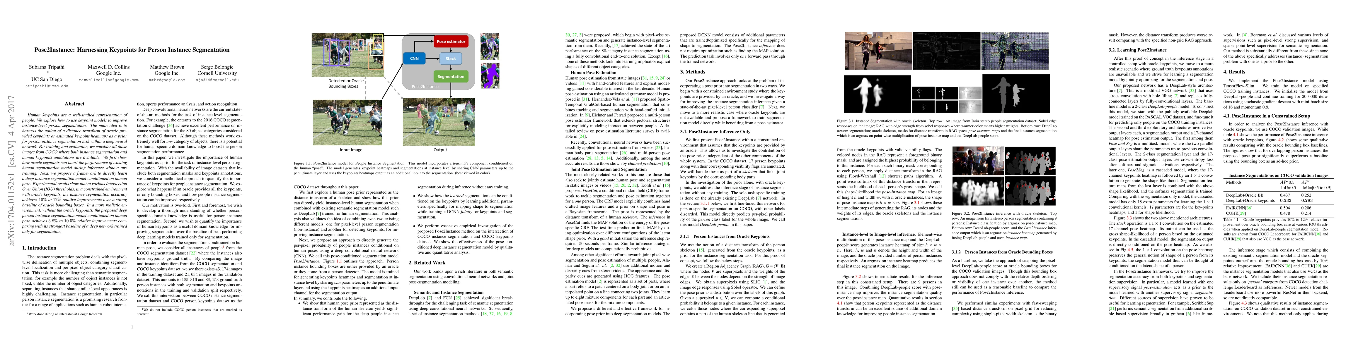 Researchers developed a method to improve person instance segmentation using keypoints, achieving 10-12% relative improvements in constrained environments and 3.8-10.5% improvements in realistic environments.