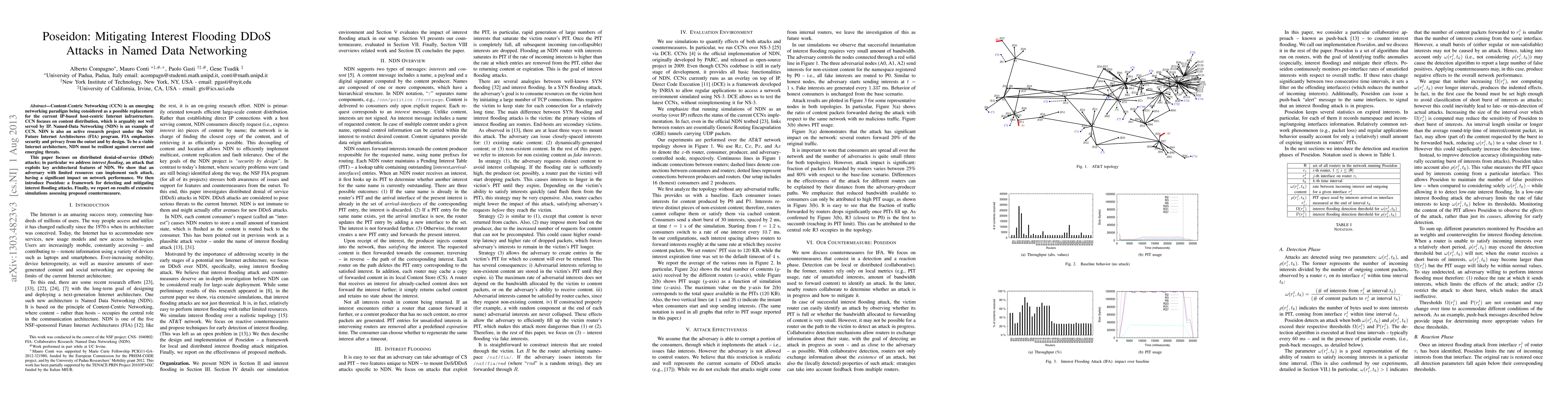 This paper addresses interest flooding DDoS attacks in Named Data Networking (NDN), demonstrating their significant impact on network performance. It introduces Poseidon, a framework for detecting and mitigating such attacks, and reports on simulation results validating its effectiveness.
