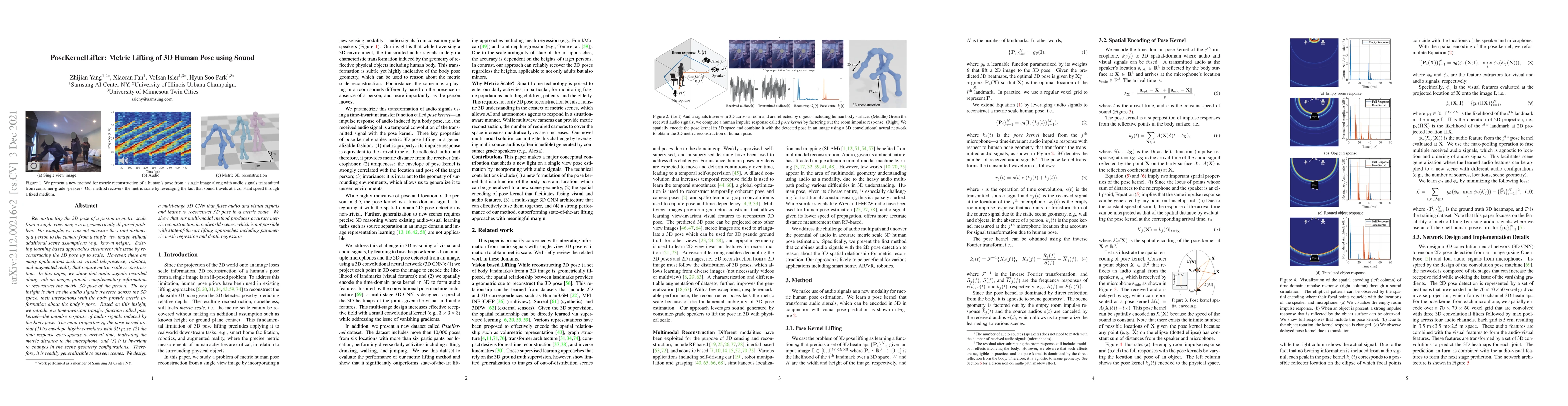 This paper introduces PoseKernelLifter, a method using audio signals to reconstruct 3D human pose in metric scale from a single image. It proposes the 'pose kernel,' a time-invariant transfer function derived from audio signals' interactions with the body, providing correlating envelope and metric distance information. The approach outperforms existing methods in real-world scenarios, enabling applications like virtual telepresence, robotics, and AR.