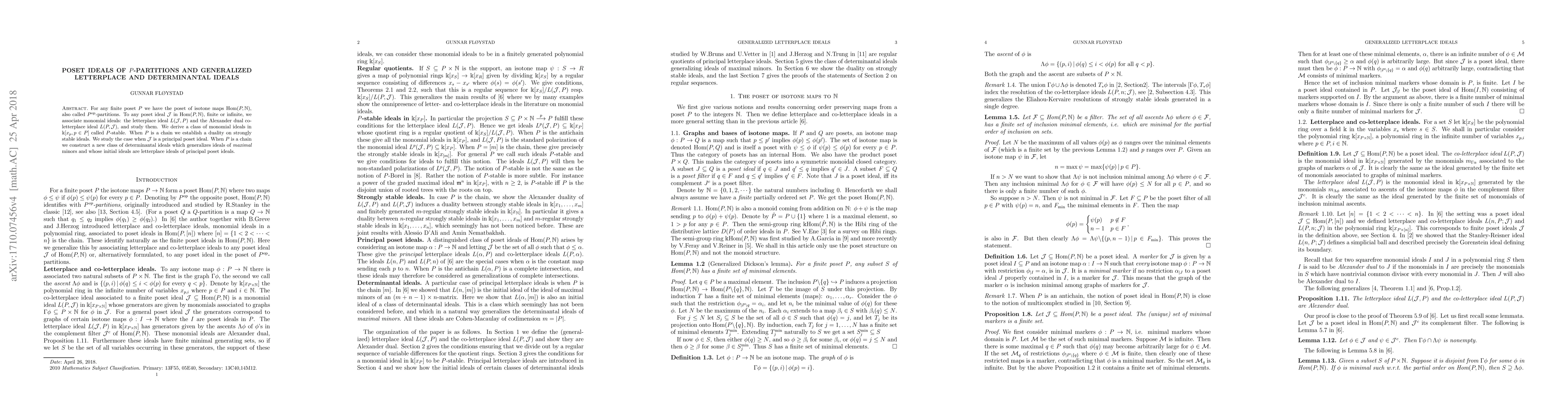 For any finite poset $P$ we have the poset of isotone maps $\text{Hom}(P,\mathbb{N})$, also called $P^{op}$-partitions. To any poset ideal ${\mathcal J}$ in $\text{Hom}(P,\mathbb{N})$, finite or infinite, we associate monomial ideals: the letterplace ideal $L({\mathcal J},P)$ and the Alexander dual co-letterplace ideal $L(P,{\mathcal J})$, and study them. We derive a class of monomial ideals in $k[x_p, p \in P]$ called $P$-stable. When $P$ is a chain we establish a duality on strongly stable ideals. We study the case when ${\mathcal J}$ is a principal poset ideal. When $P$ is a chain we construct a new class of determinantal ideals which generalizes ideals of {\it maximal} minors and whose initial ideals are letterplace ideals of prinicpal poset ideals.