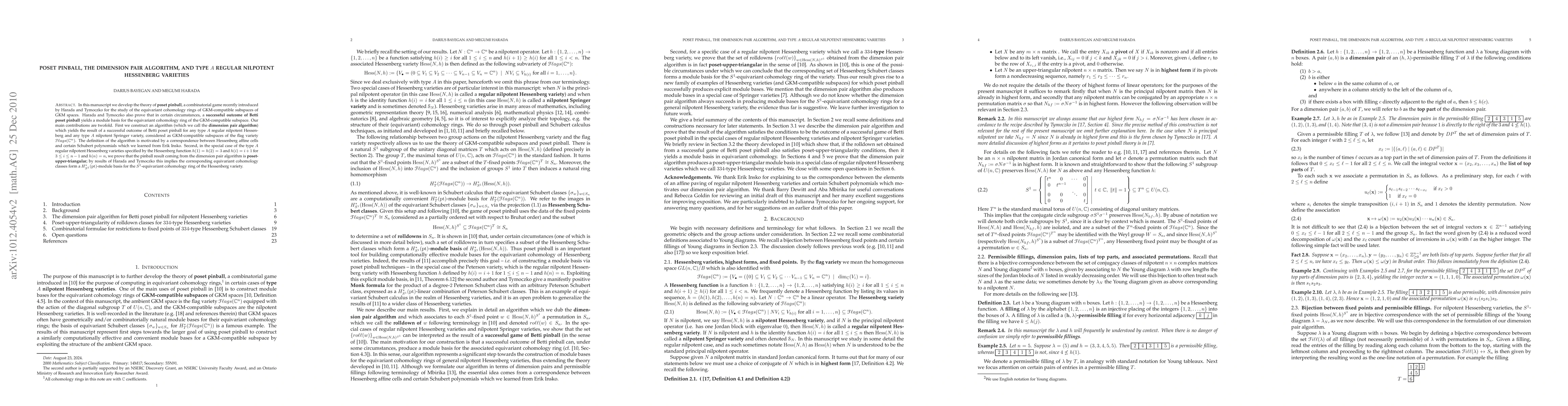 In this manuscript we develop the theory of poset pinball, a combinatorial game recently introduced by Harada and Tymoczko for the study of the equivariant cohomology rings of GKM-compatible subspaces of GKM spaces. Harada and Tymoczko also prove that in certain circumstances, a successful outcome of Betti poset pinball yields a module basis for the equivariant cohomology ring of the GKM-compatible subspace. Our main contributions are twofold. First we construct an algorithm (which we call the dimension pair algorithm) which yields the result of a successful outcome of Betti poset pinball for any type $A$ regular nilpotent Hessenberg and any type $A$ nilpotent Springer variety, considered as GKM-compatible subspaces of the flag variety $\Flags(\C^n)$. The definition of the algorithm is motivated by a correspondence between Hessenberg affine cells and certain Schubert polynomials which we learned from Erik Insko. Second, in the special case of the type $A$ regular nilpotent Hessenberg varieties specified by the Hessenberg function $h(1)=h(2)=3$ and $h(i) = i+1$ for $3 \leq i \leq n-1$ and $h(n)=n$, we prove that the pinball result coming from the dimension pair algorithm is poset-upper-triangular; by results of Harada and Tymoczko this implies the corresponding equivariant cohomology classes form a $H^*_{S^1}(\pt)$-module basis for the $S^1$-equivariant cohomology ring of the Hessenberg variety.