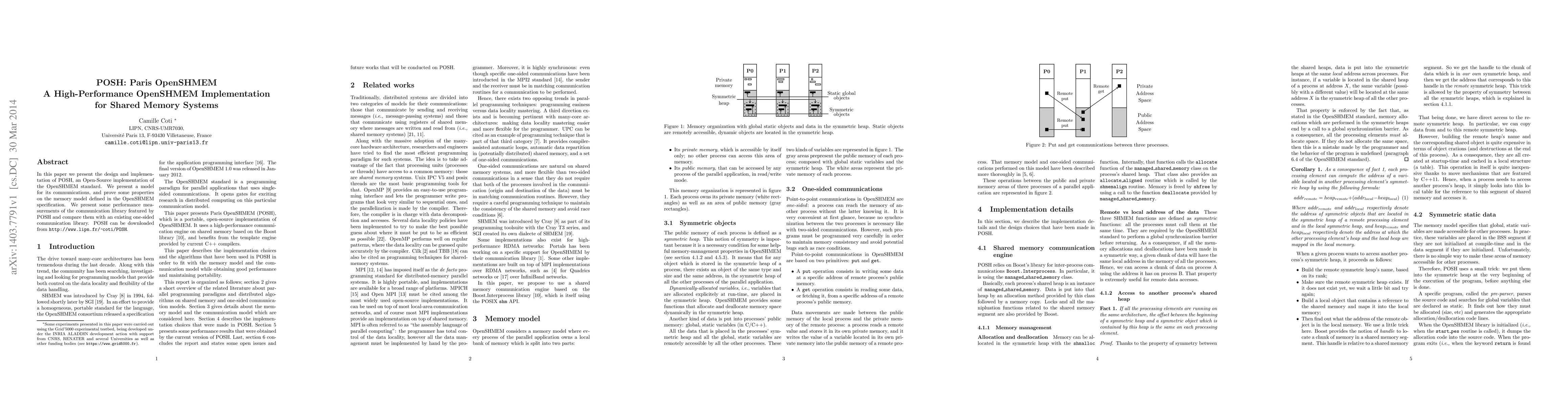 Researchers developed POSH, an open-source implementation of OpenSHMEM for high-performance shared memory systems, showcasing improved performance in one-sided communication libraries.