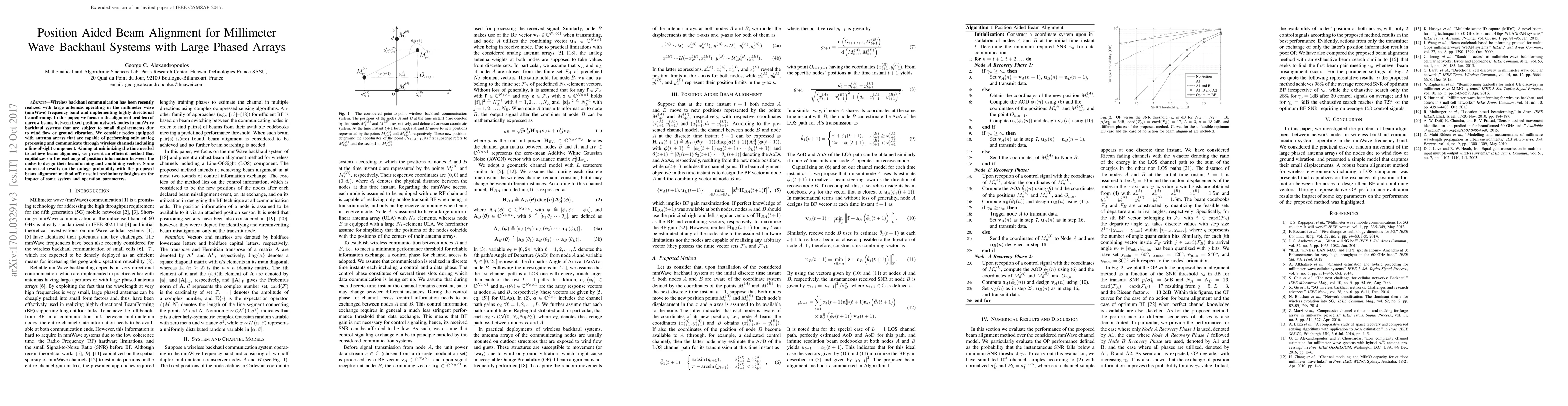 Wireless backhaul communication has been recently realized with large antennas operating in the millimeter wave (mmWave) frequency band and implementing highly directional beamforming. In this paper, we focus on the alignment problem of narrow beams between fixed position network nodes in mmWave backhaul systems that are subject to small displacements due to wind flow or ground vibration. We consider nodes equipped with antenna arrays that are capable of performing only analog processing and communicate through wireless channels including a line-of-sight component. Aiming at minimizing the time needed to achieve beam alignment, we present an efficient method that capitalizes on the exchange of position information between the nodes to design their beamforming and combining vectors. Some numerical results on the outage probability with the proposed beam alignment method offer useful preliminary insights on the impact of some system and operation parameters.