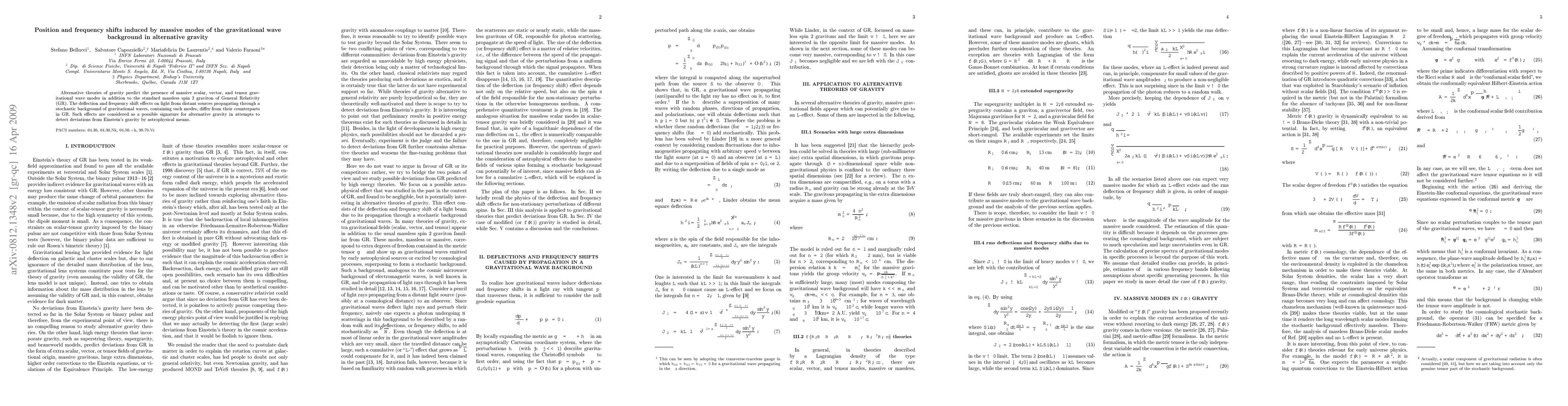 Alternative theories of gravity predict the presence of massive scalar, vector, and tensor gravitational wave modes in addition to the standard massless spin~2 graviton of general relativity. The deflection and frequency shift effects on light from distant sources propagating through a stochastic background of gravitational waves, containing such modes, differ from their counterparts in general relativity. Such effects are considered as a possible signature for alternative gravity in attempts to detect deviations from Einstein's gravity by astrophysical means.