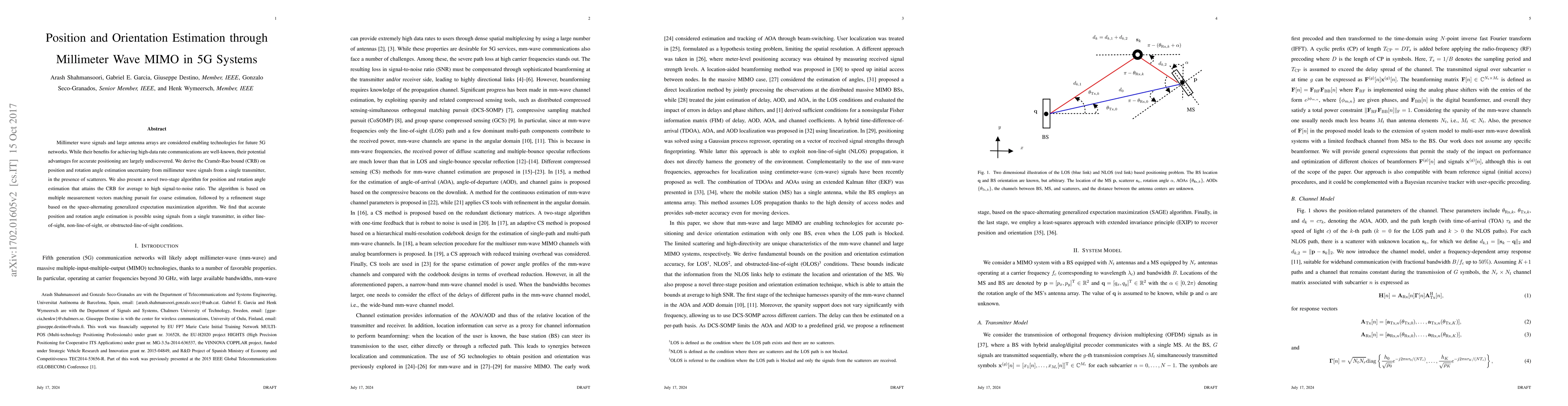 This paper explores the potential of millimeter wave MIMO in 5G networks for accurate position and orientation estimation, deriving the Cramér-Rao bound for uncertainty. It introduces a two-stage algorithm achieving near-optimal estimation under various signal conditions, demonstrating feasibility in diverse environments.